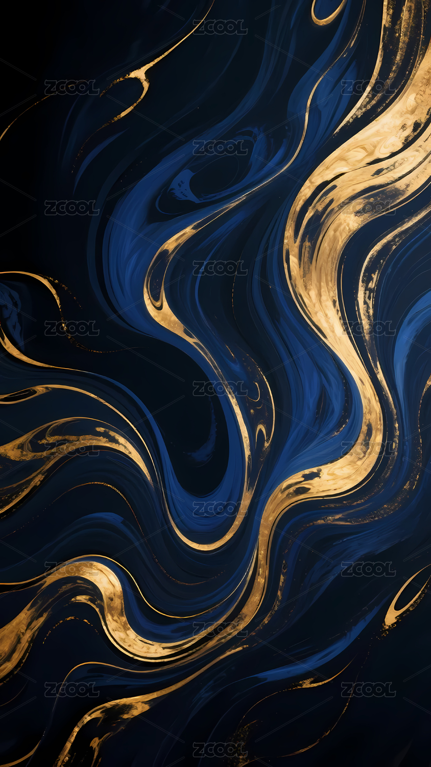 深蓝金韵抽象艺术