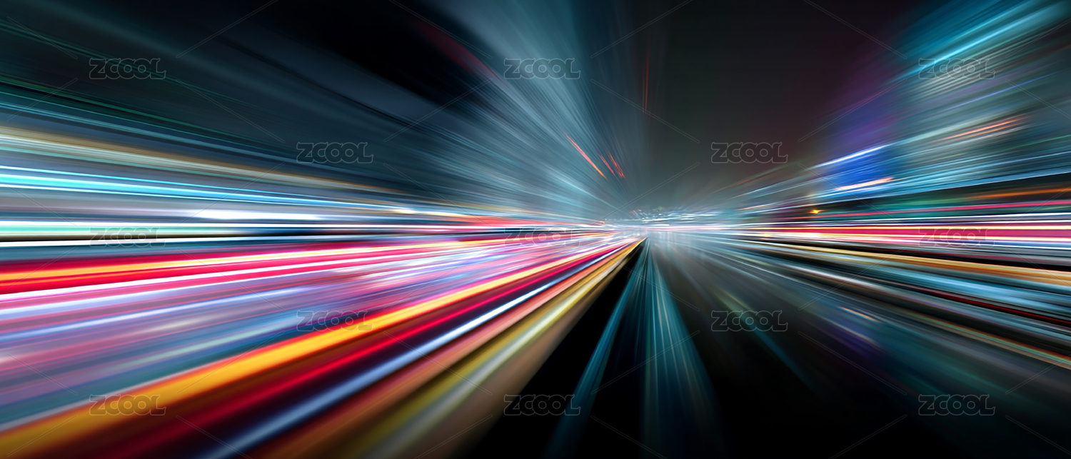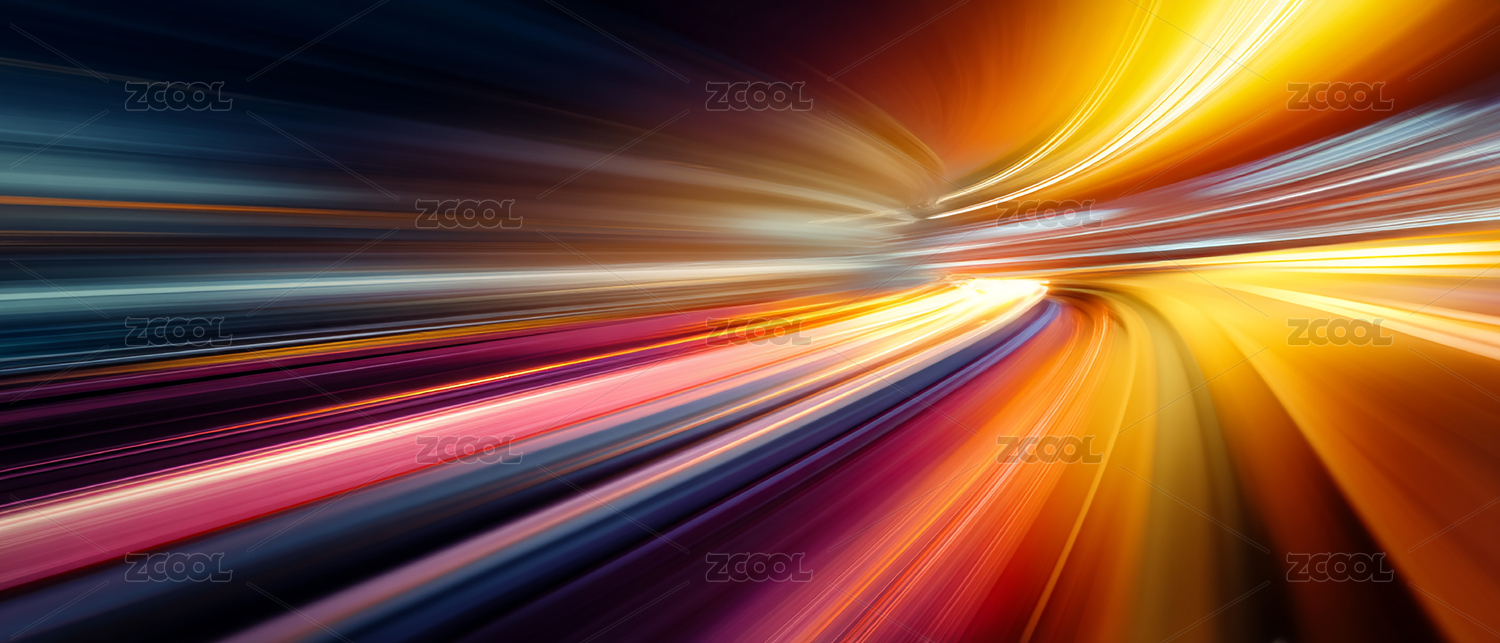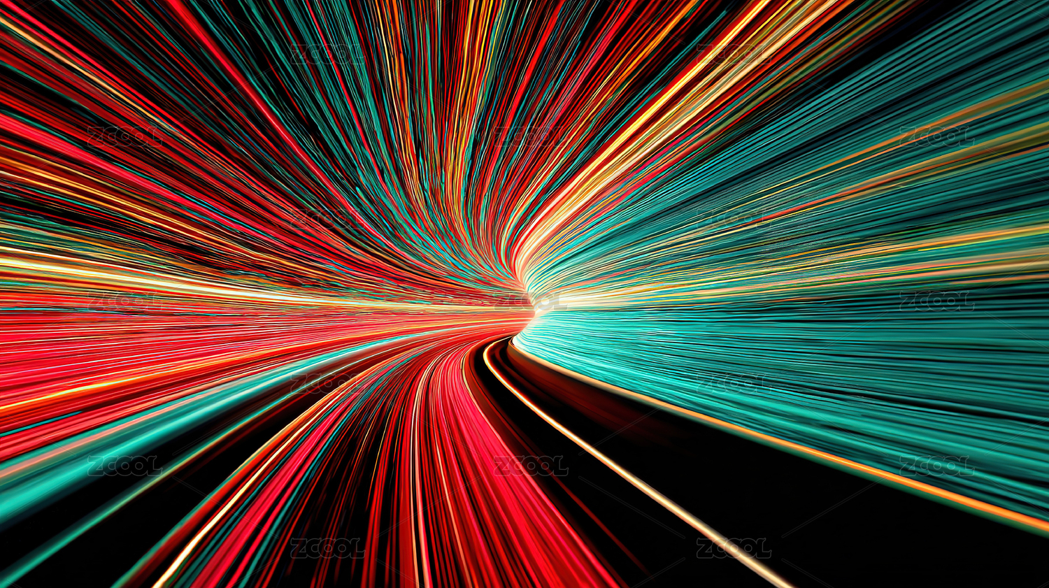 赛博朋克银光色五彩灯带隧道通道3D插画