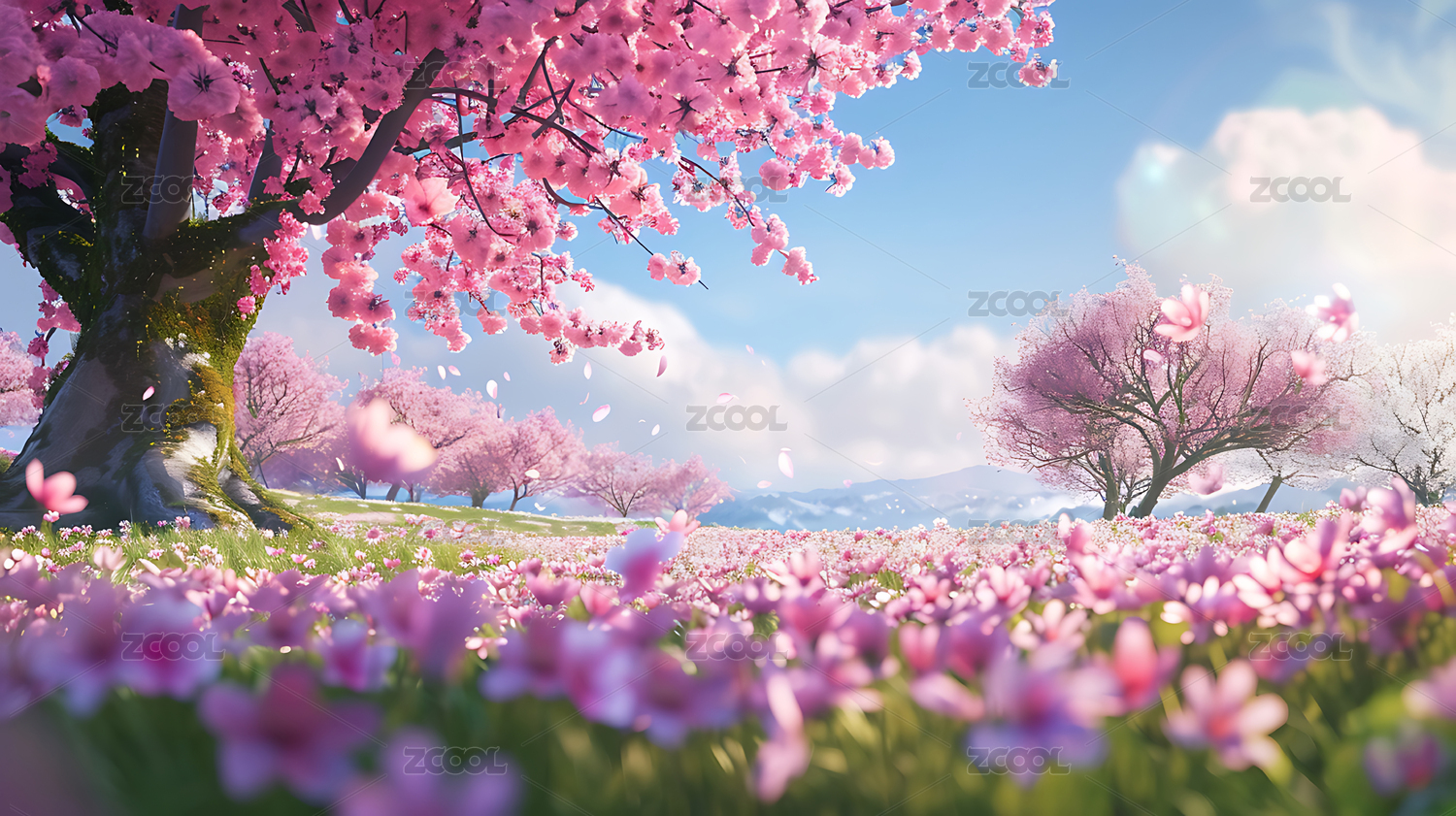 粉色樱花山脉意境景色