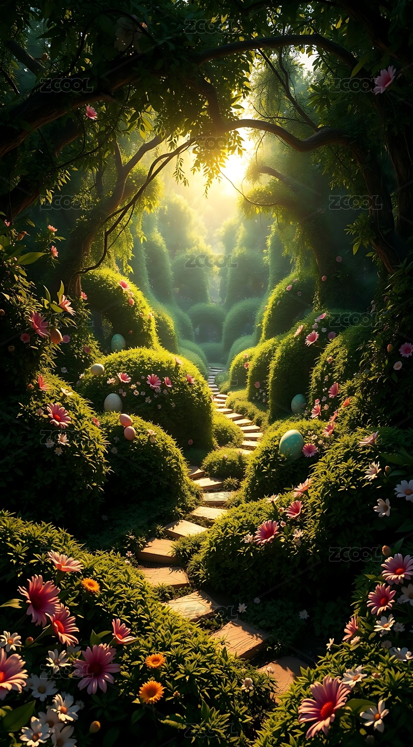 阳光下的神秘花园小径