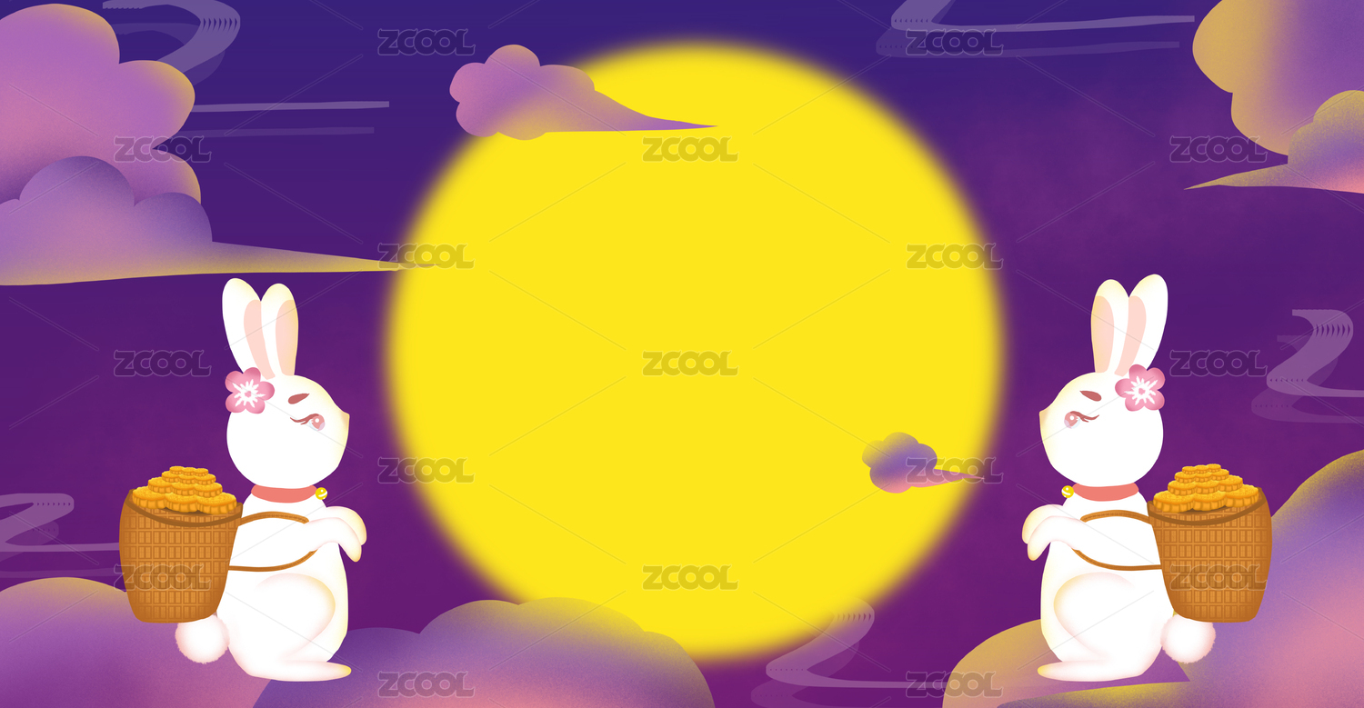 玉兔,月亮,云朵,灯笼,中秋,背景