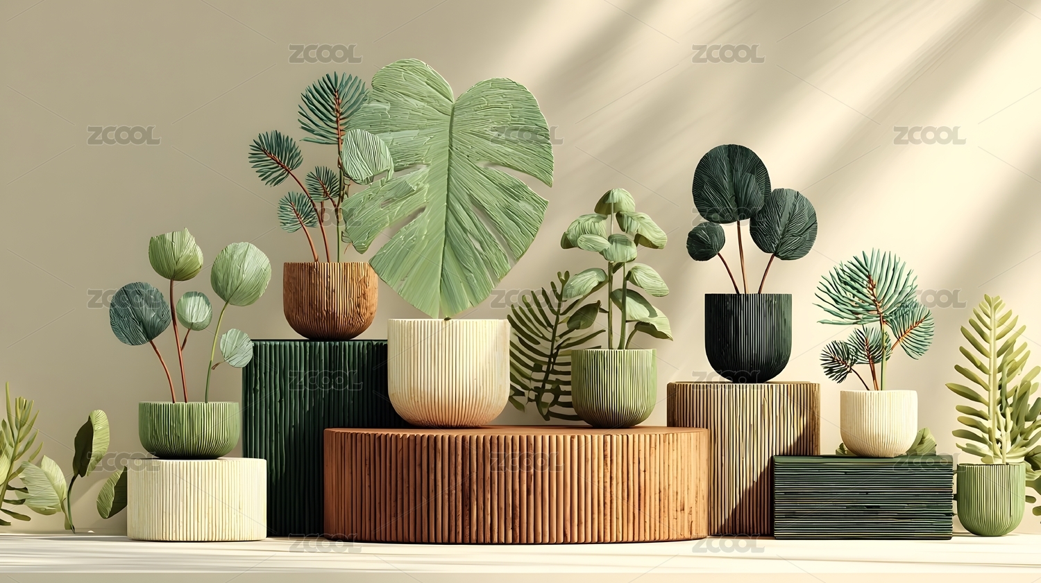 装饰,简约,现代,植物,容器,背景,风格,装饰物,排列,色彩