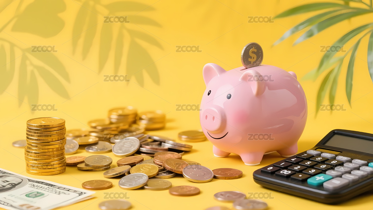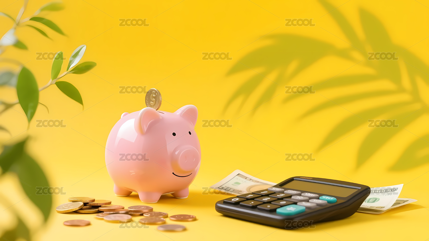 背景,装饰,绿色,叶子,粉色,黄色,金融,硬币,存钱罐,纸币