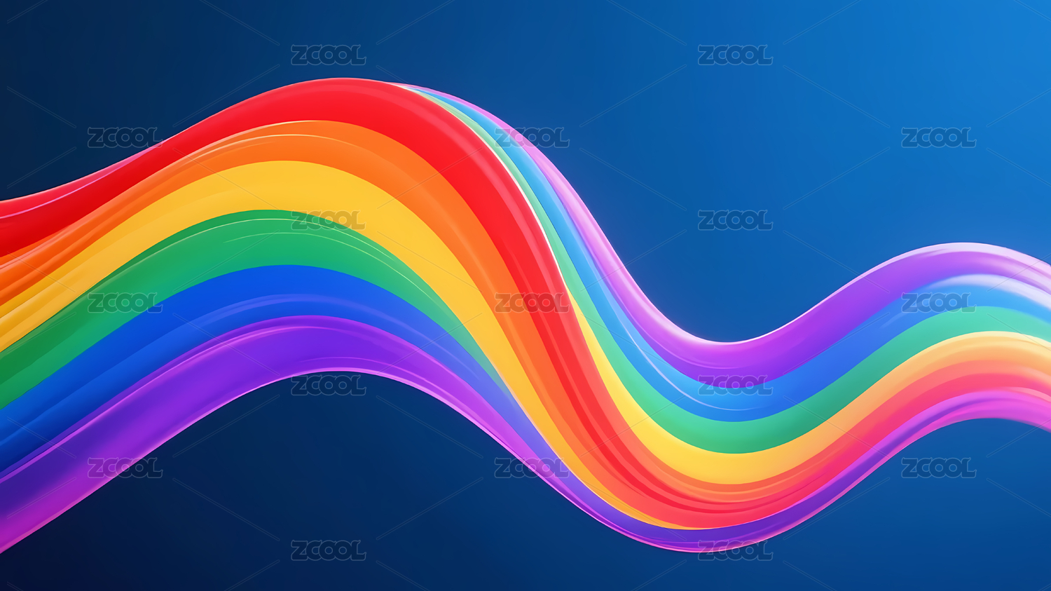 彩虹色波浪带在蓝色背景上