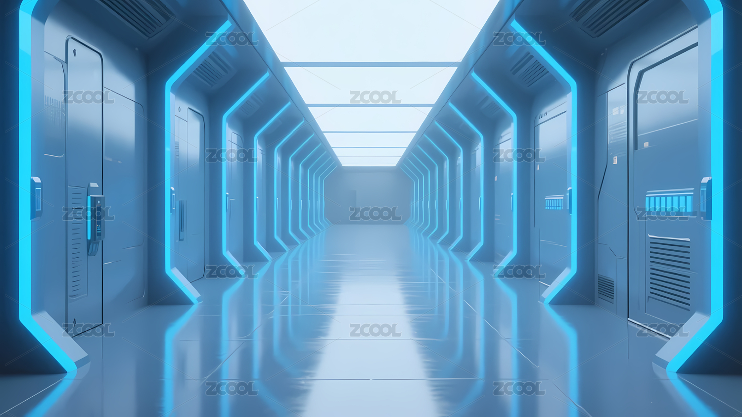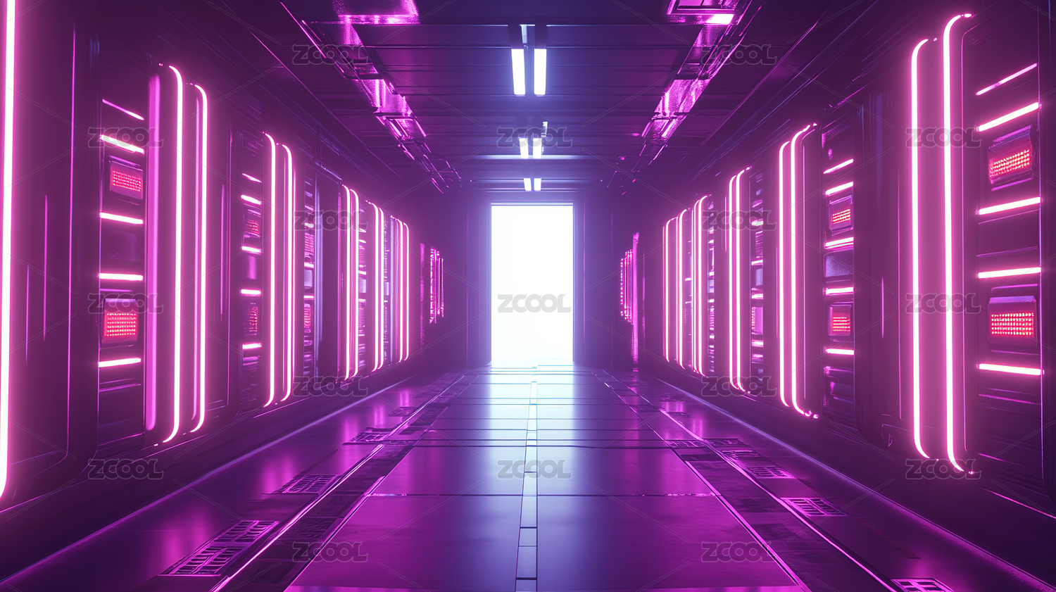 霓虹灯,未来,橙色,背景,深色,蓝色,金属,排列,走廊,柜子
