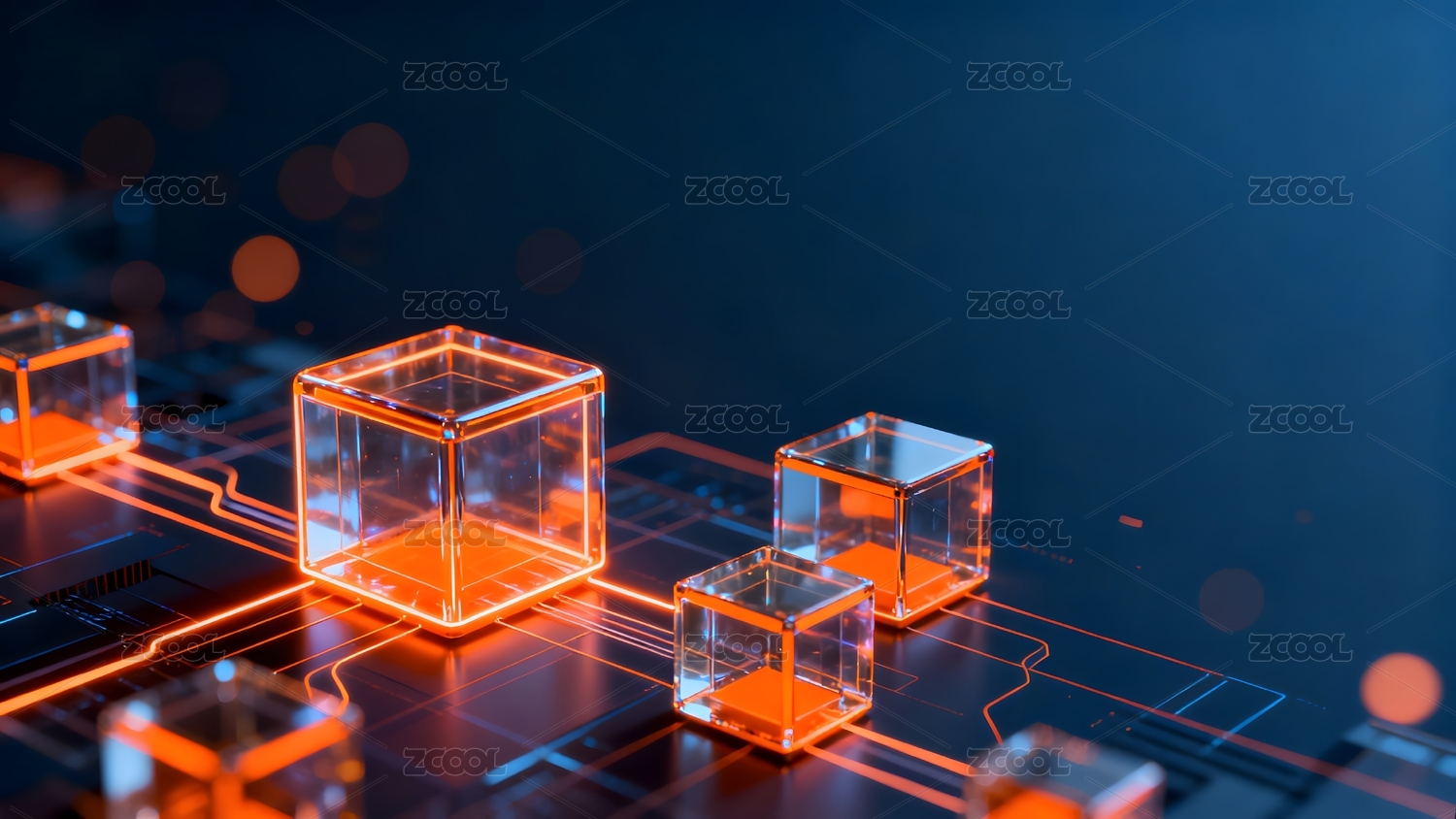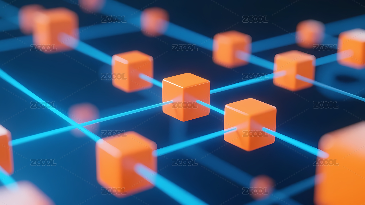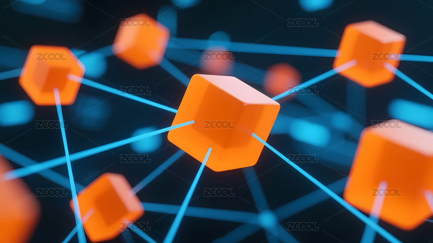 蓝色,背景,科技,结构,深蓝,线条,橙色,连接,网络,立方体