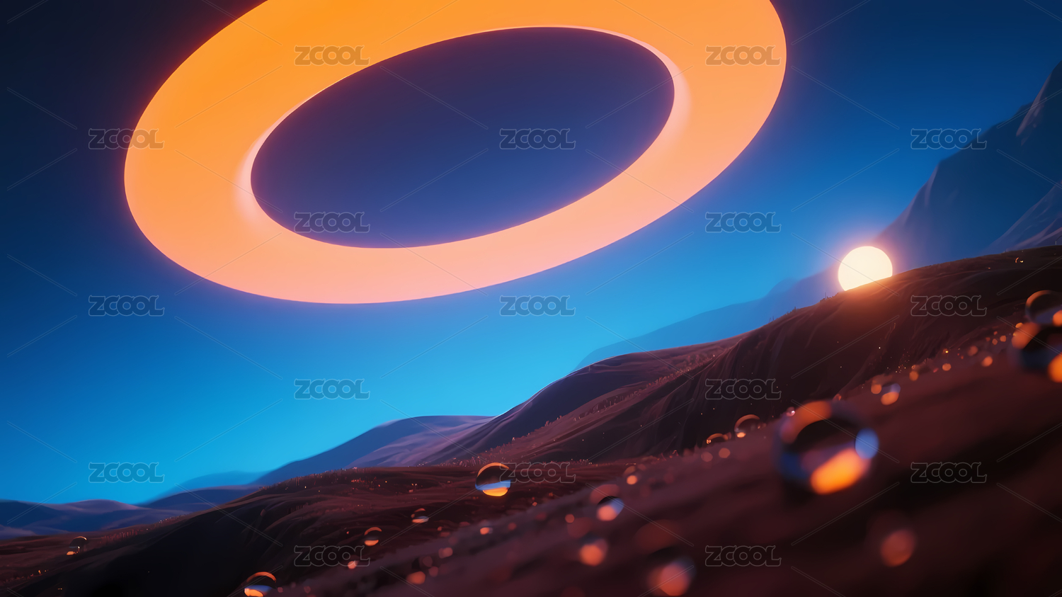 橙色发光圆环山丘