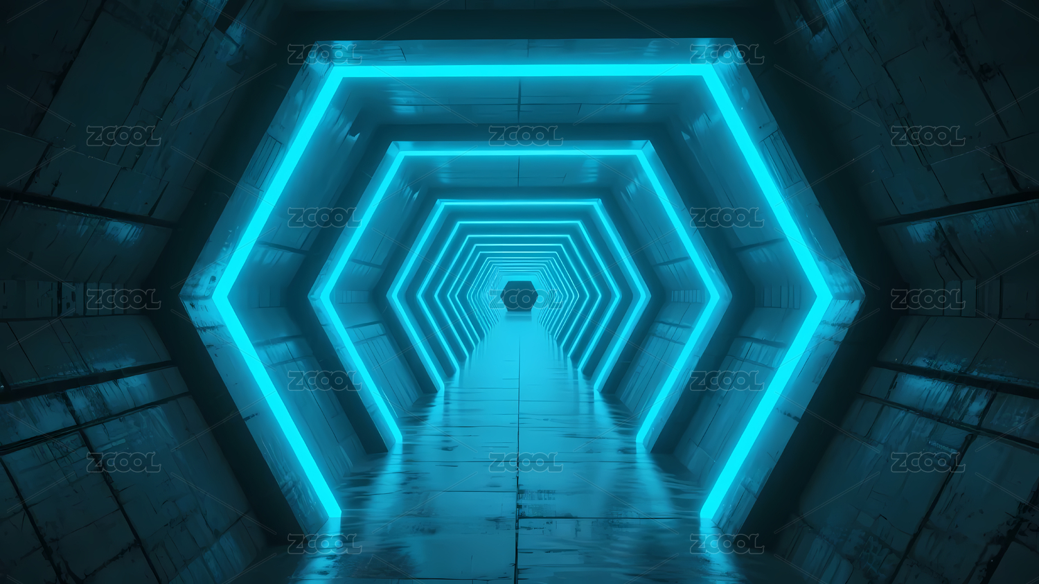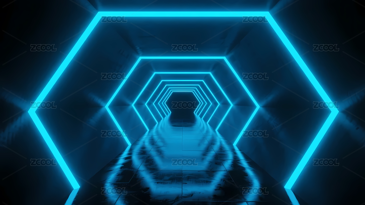 背景,蓝色,橙色,深色,科技,未来,长廊,霓虹灯,墙壁,地面