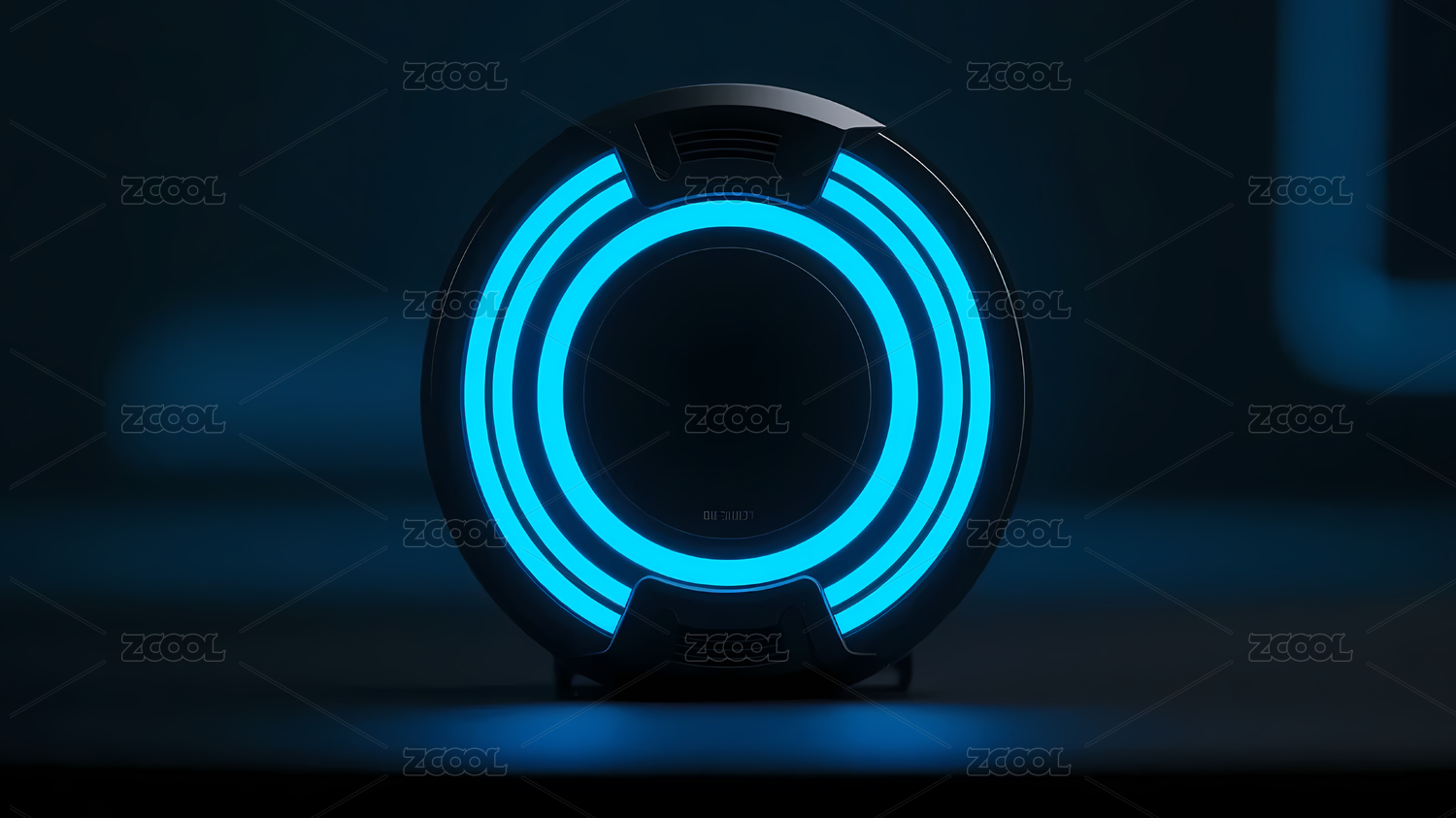 黑色设备与蓝色发光环