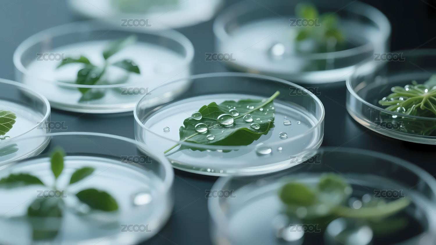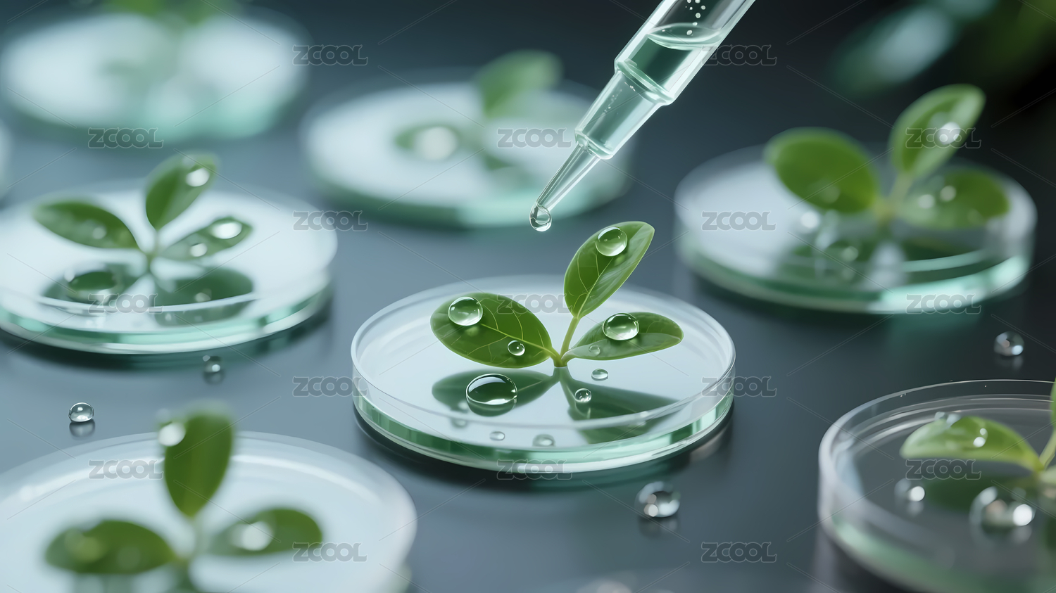 绿色,黑色,植物,实验台,培养皿,液体,手,滴管,叶片,操作