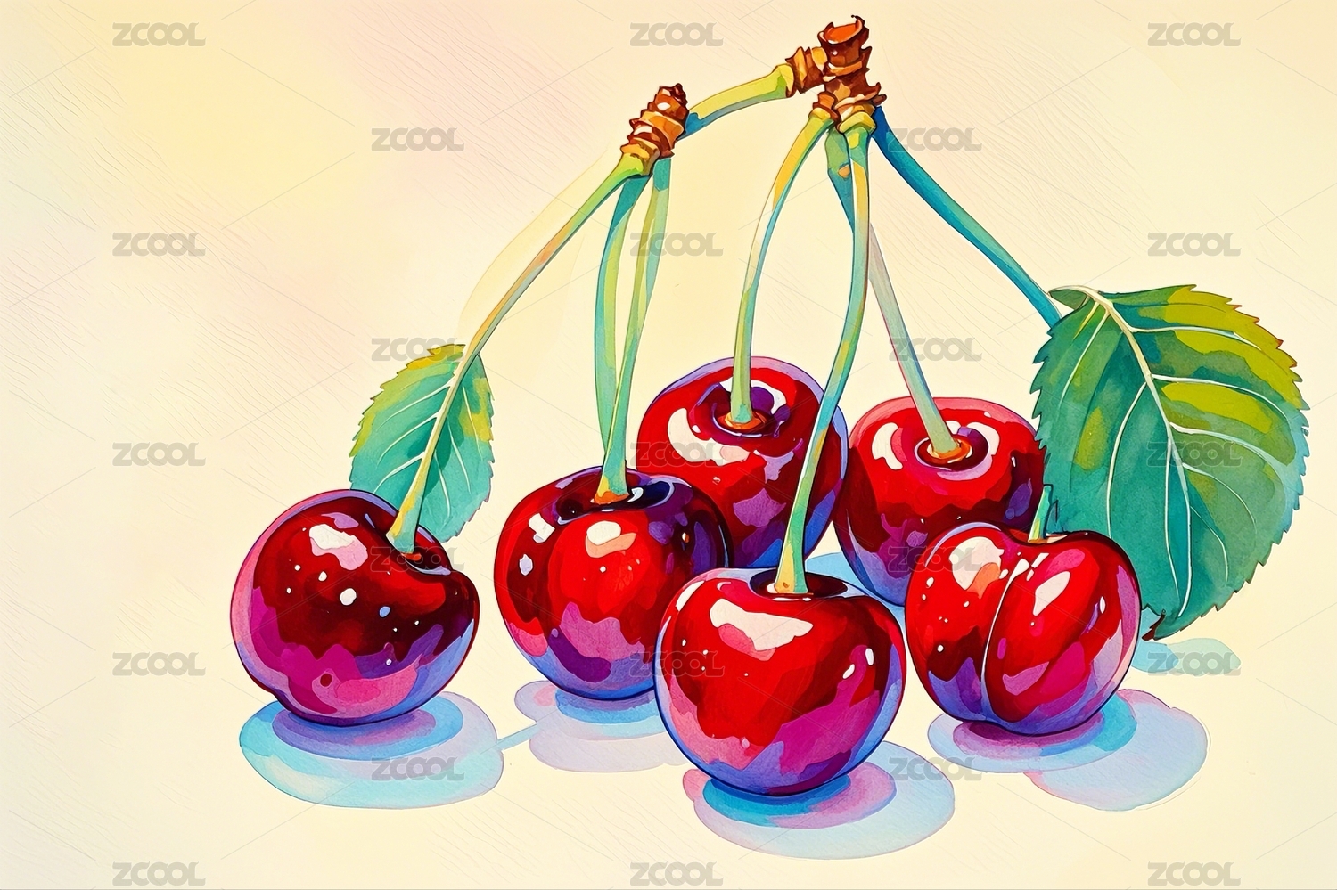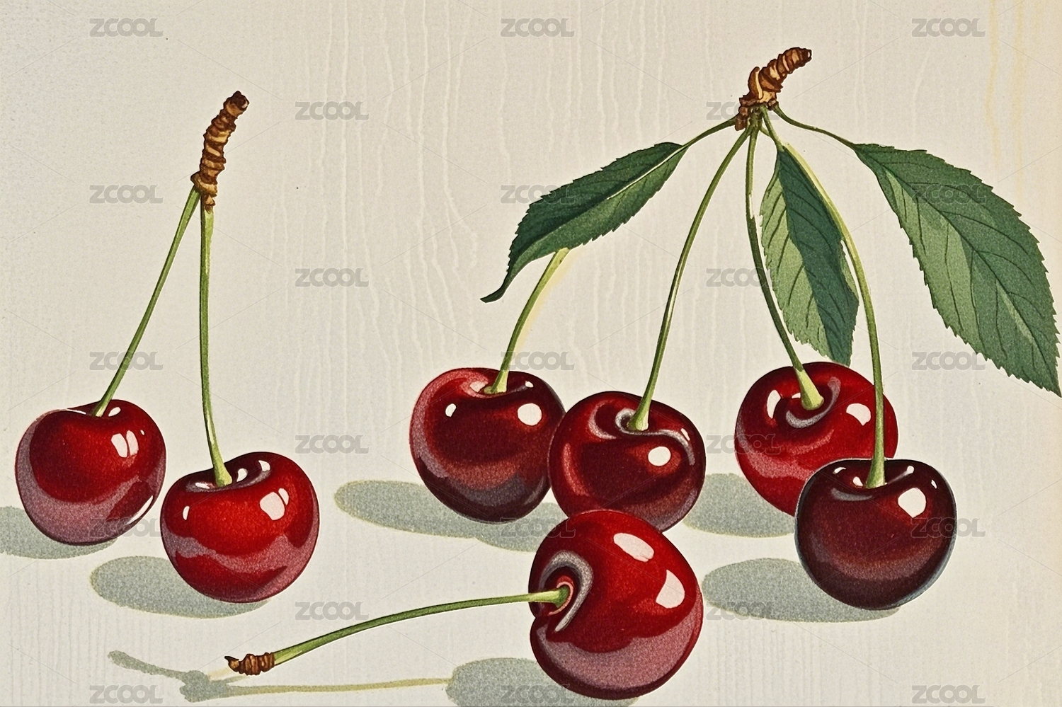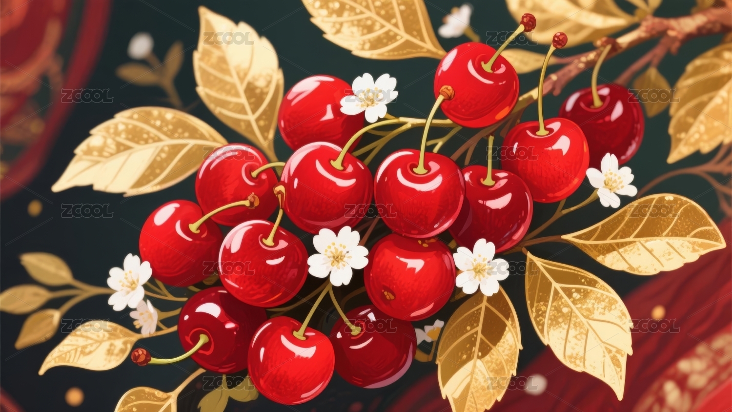 主视觉,场景,金叶,樱桃,插画,水果,金色,叶片,艺术,设计