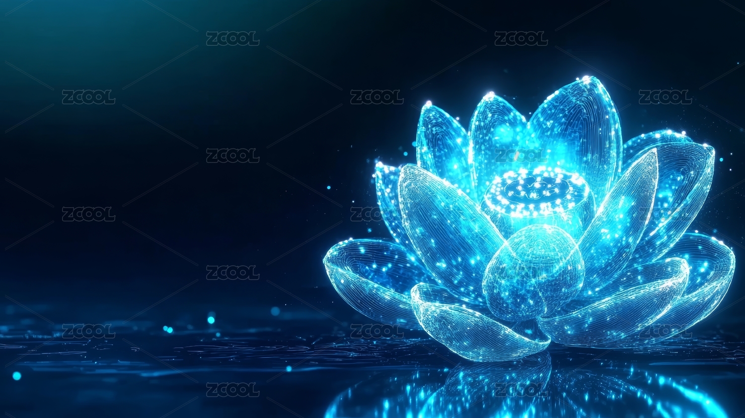 主视觉,发光,莲花,科技感,装饰,场景,梦幻,光影,叶片,花蕊