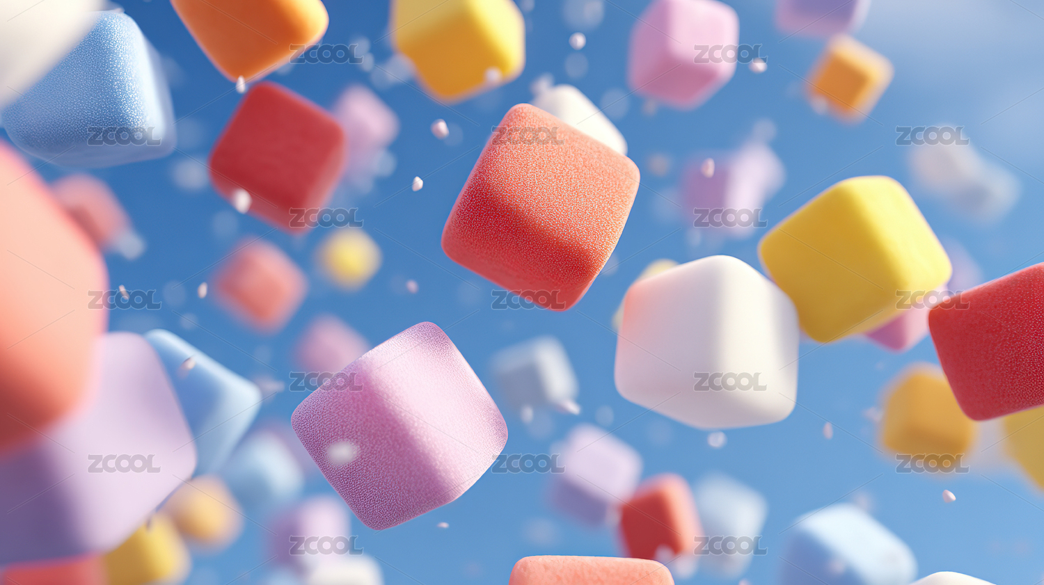 彩色方块堆叠特写 梦幻场景 柔和配色