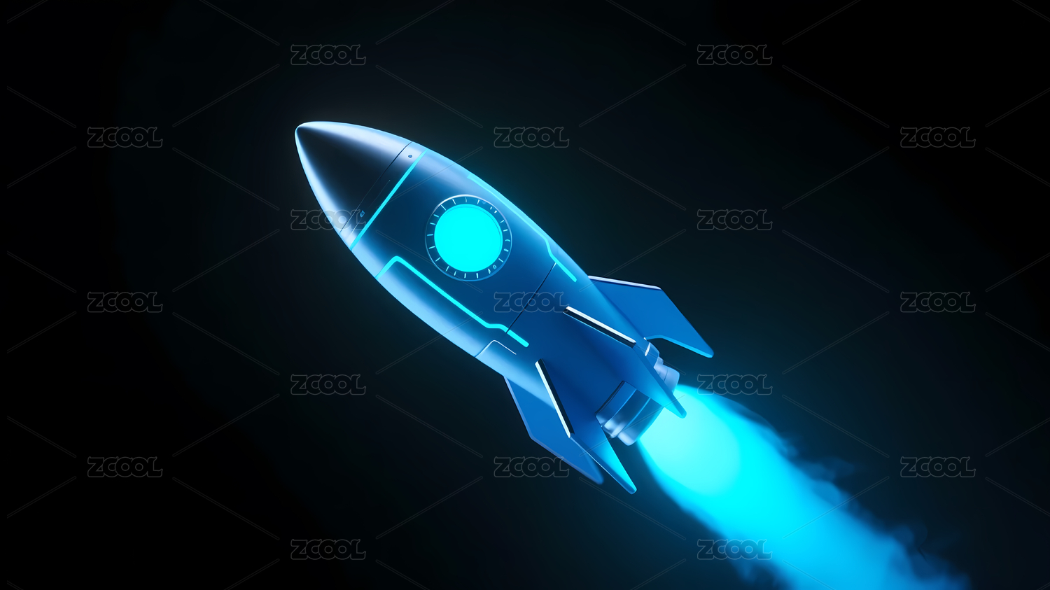 夜空中的蓝色火箭发射