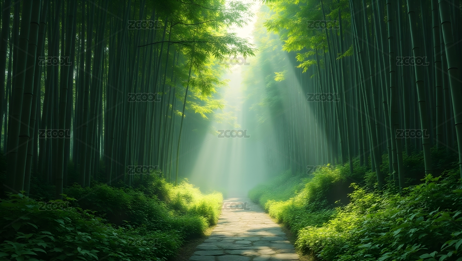 主视觉,场景,传统,山水,意境,美学,自然,竹林,灯笼,静谧