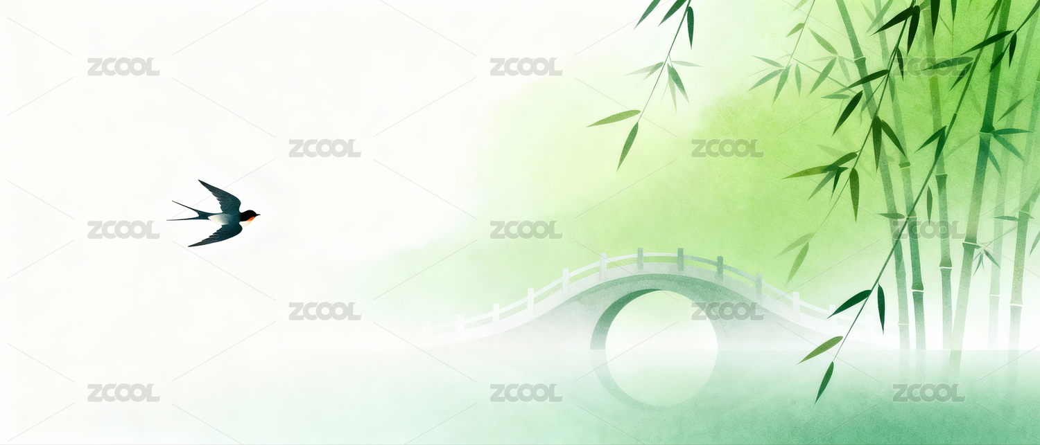 竹林小桥燕飞景