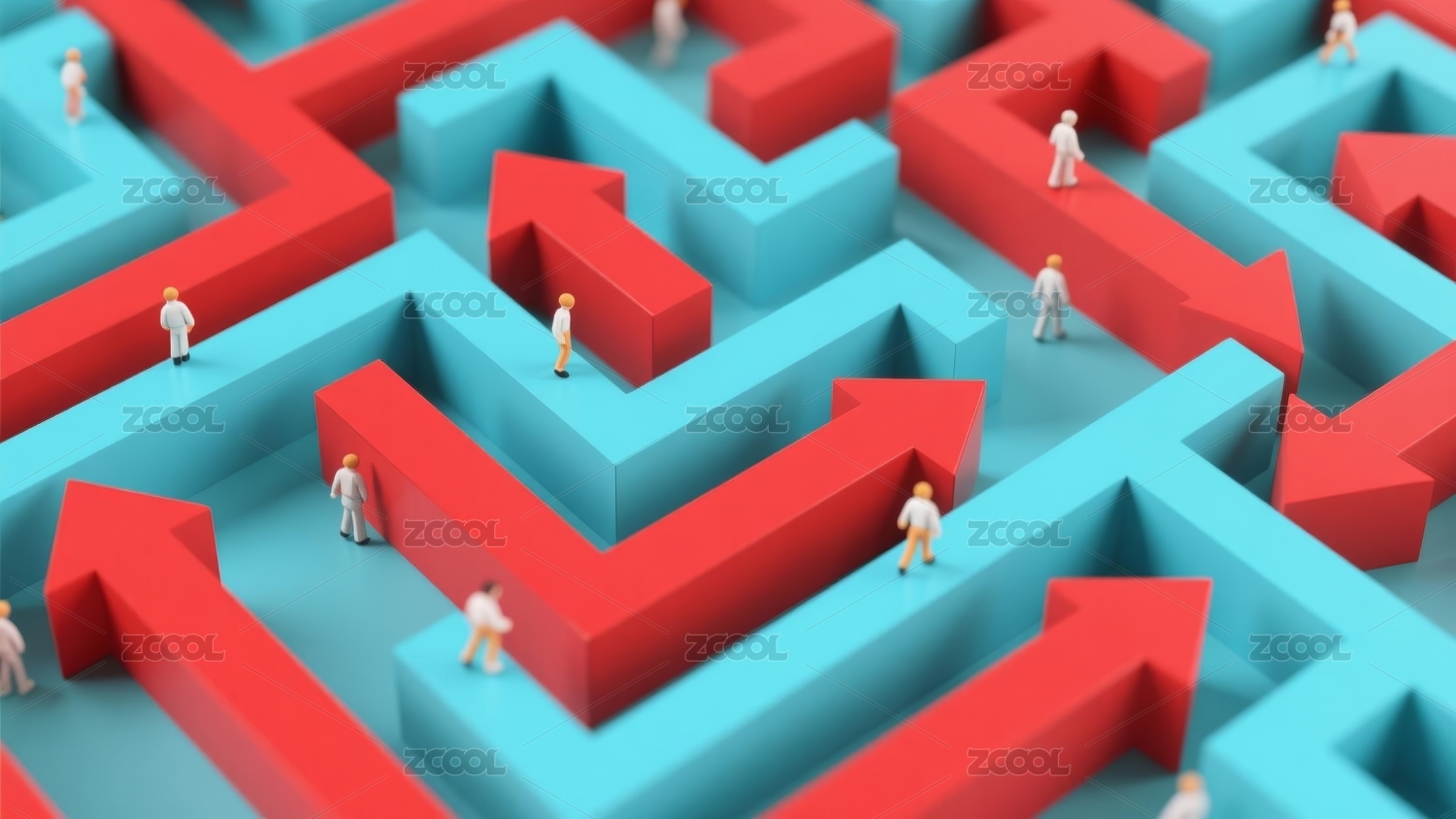 主视觉,场景,蓝色,迷宫,探索,决策,3D,空间,人物,方向