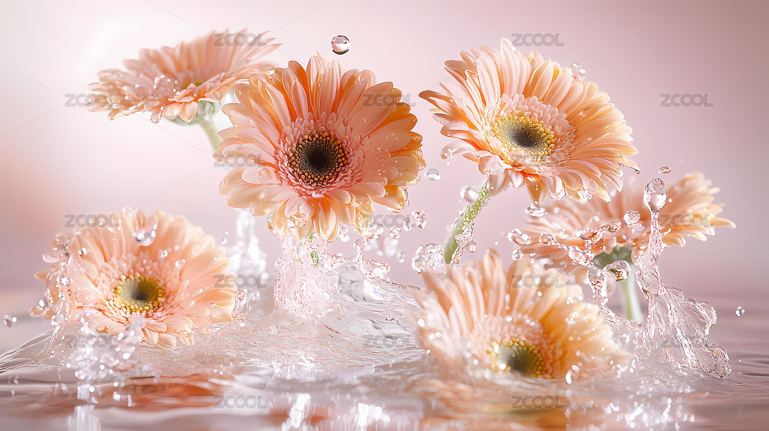 3D金粉色温馨花团甜蜜幸福高级背景场景