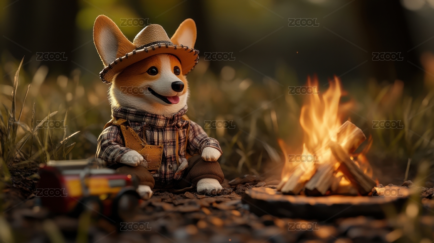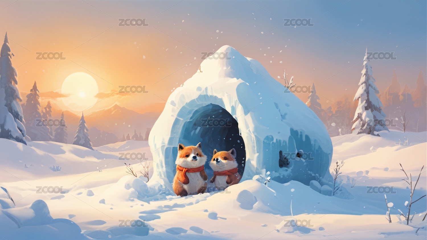 卡通,温馨,快乐,手绘,插画,可爱,温暖,棕色,风格,绿色