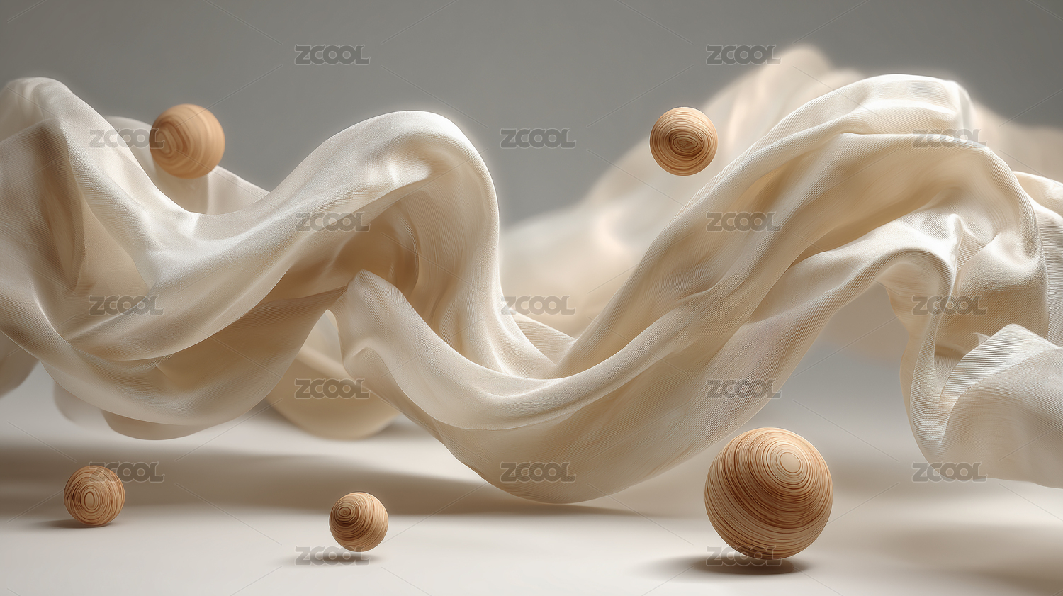 超写实丝绸浮动木球