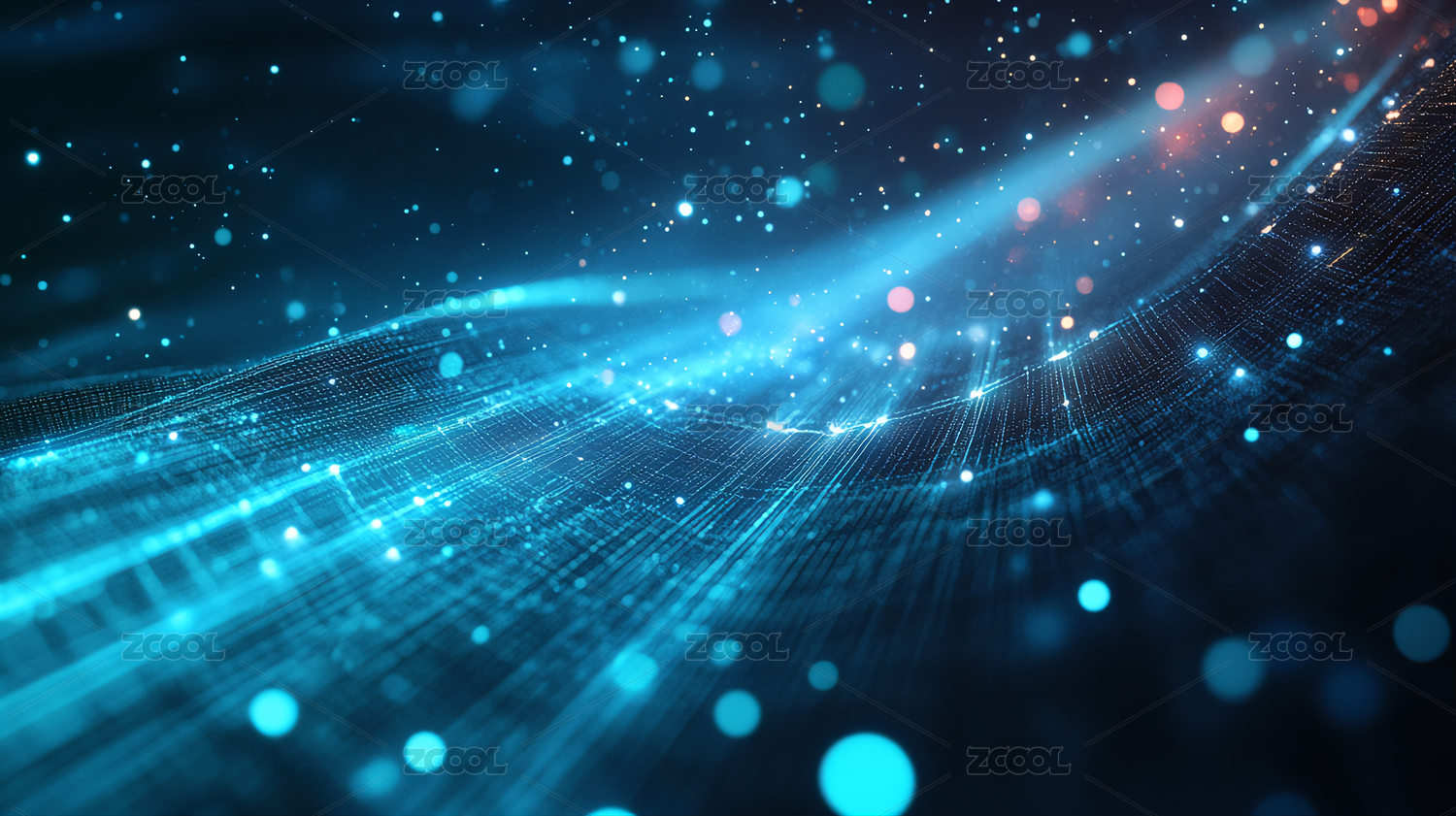蓝色科技粒子网络波浪未来科技感抽象背景