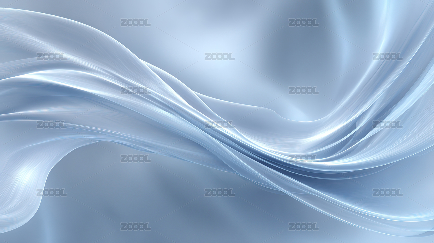 浅灰色丝绸状线条流动构成柔和抽象的艺术背