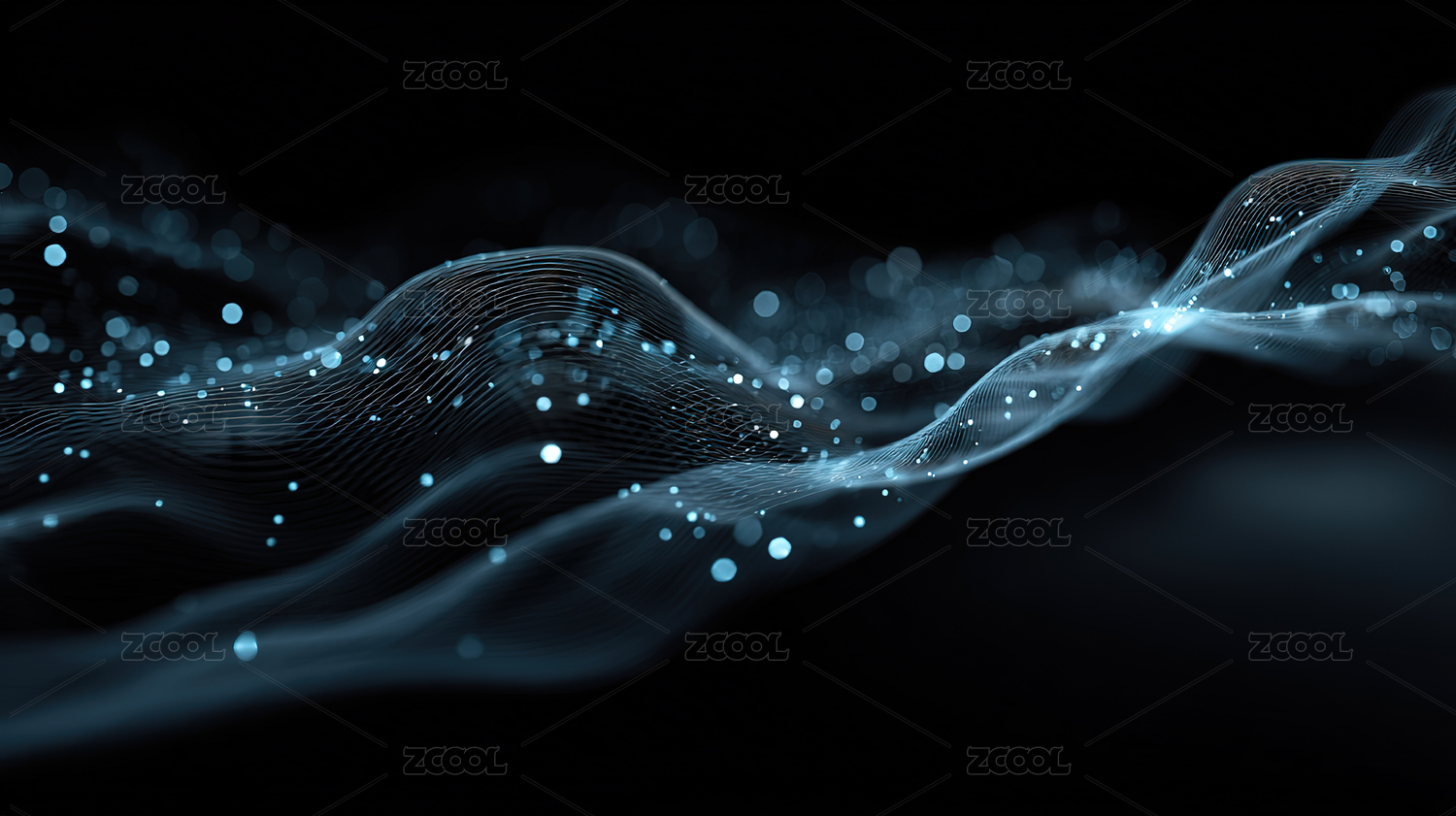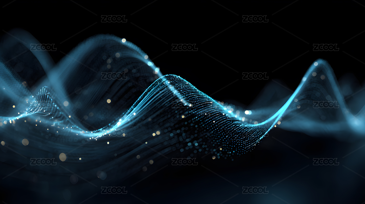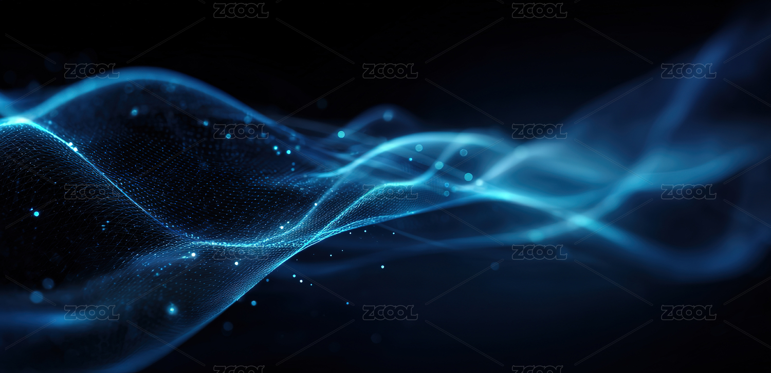 黑色背景下被照亮的蓝色光纤的特写镜头
