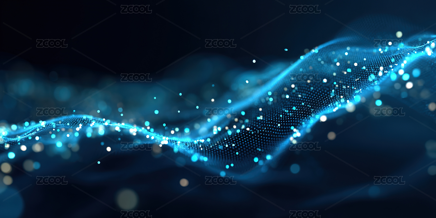 黑色背景下被照亮的蓝色光纤的特写镜头