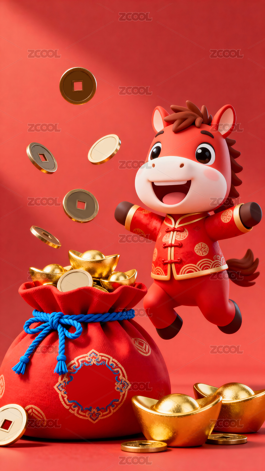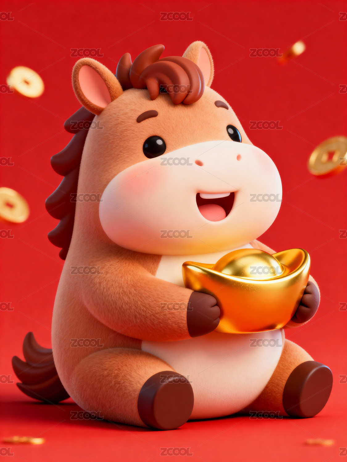 设计,红色,金色,艺术,数字,卡通,马,金元宝,可爱,新年