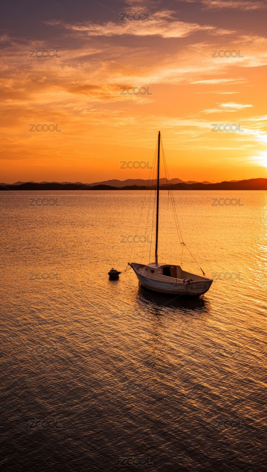 光影,宁静,自然,水波,轮廓,倒影,夕阳,余晖,日落,帆船