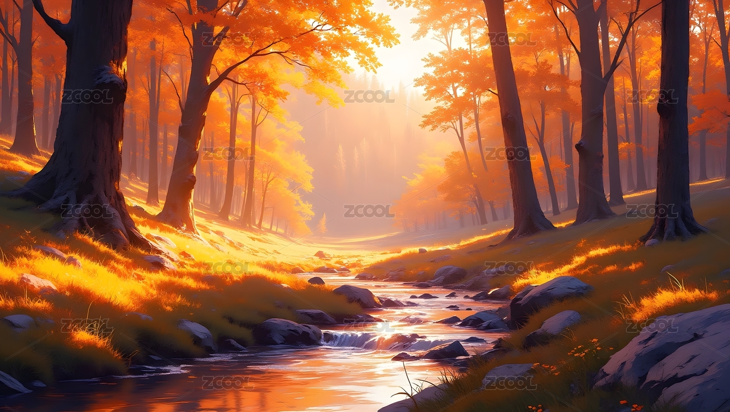 光线,光影,自然,宁静,静谧,树影,晨光,林间,树木,晨雾