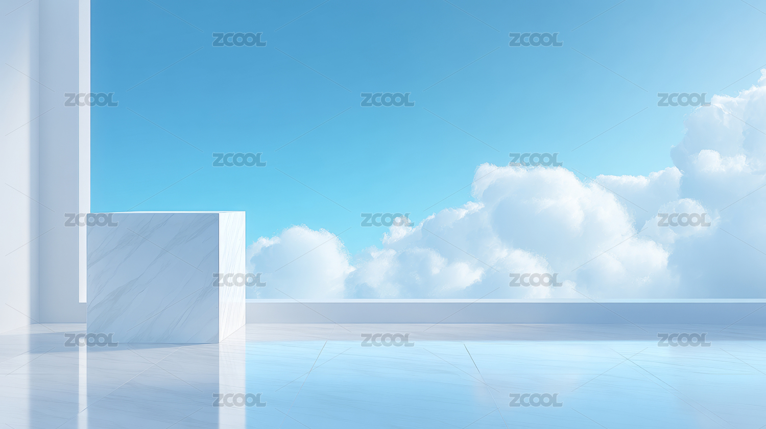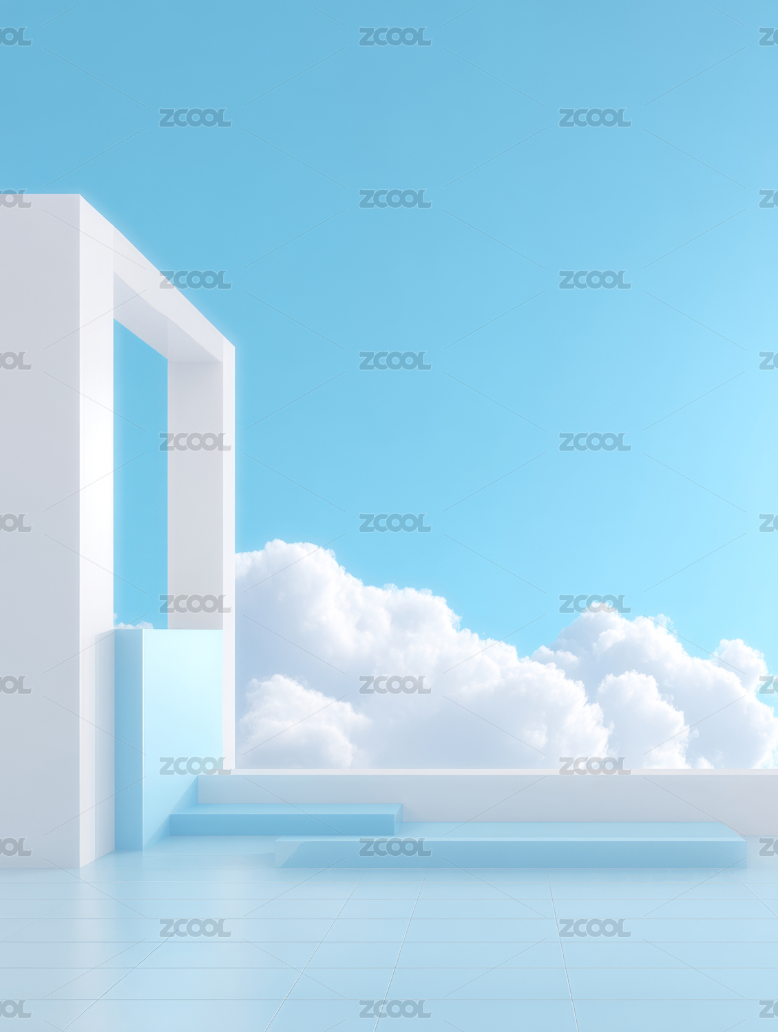蓝天,白云,建筑,现代,简洁,户外,天空,平台,几何,明亮