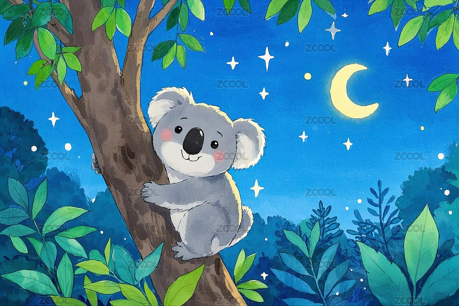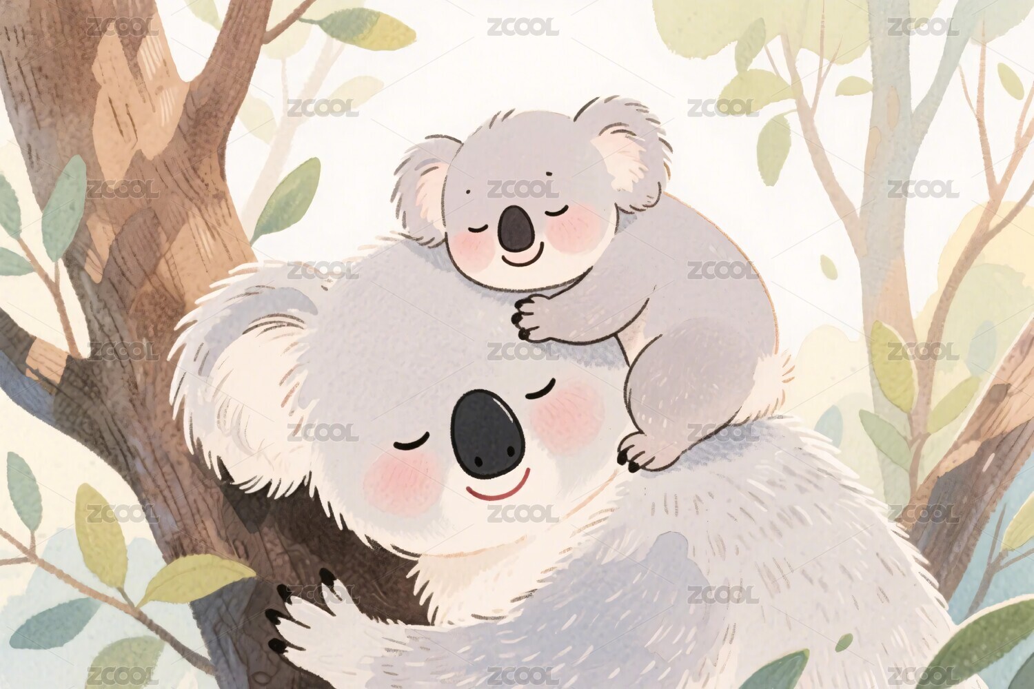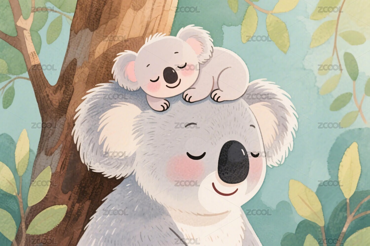 考拉,绿叶,粉色,背景,可爱,插画,自然,艺术