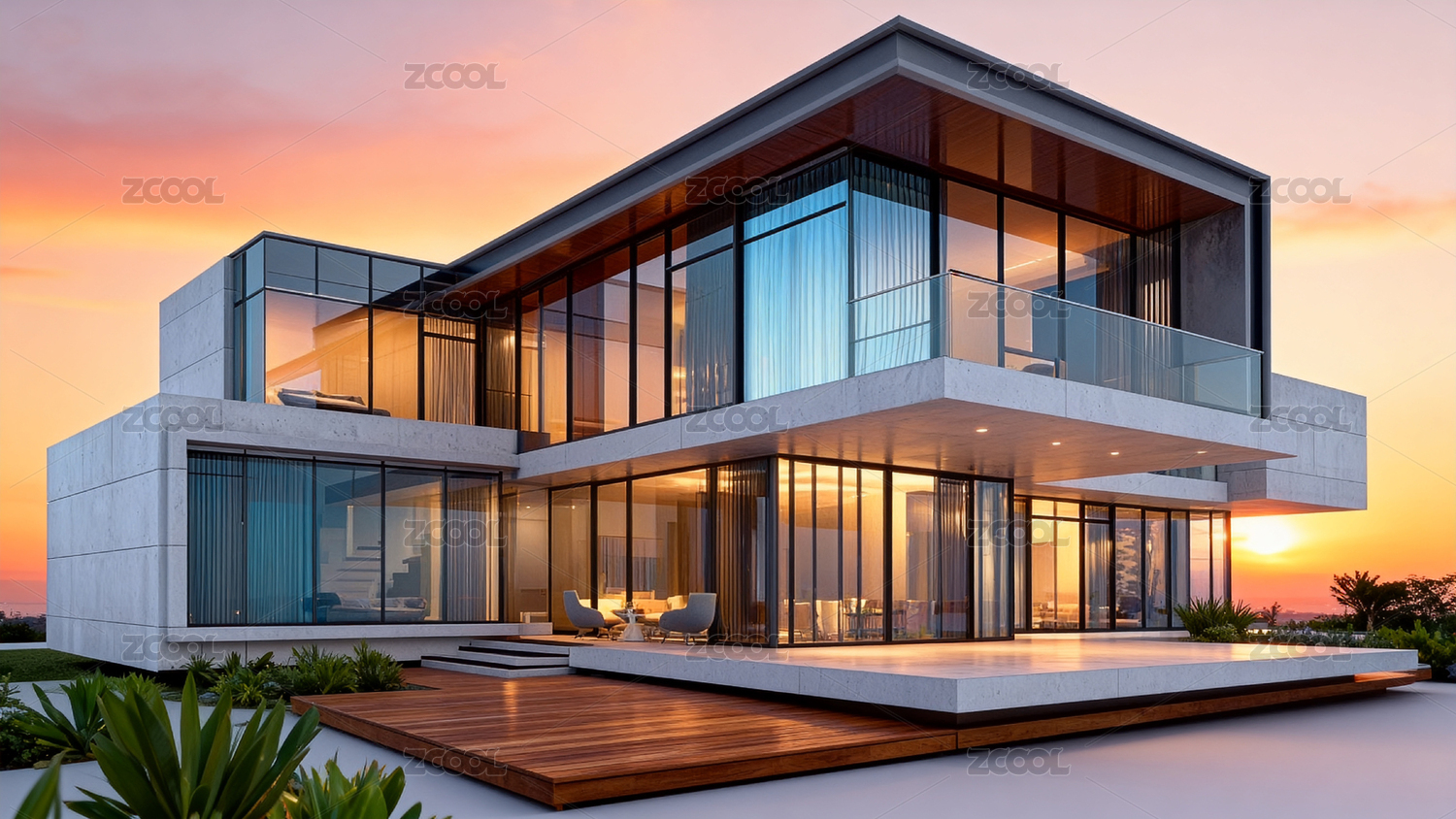 现代,建筑,别墅,简约,设计,大窗户,入口,门廊,植物,装饰