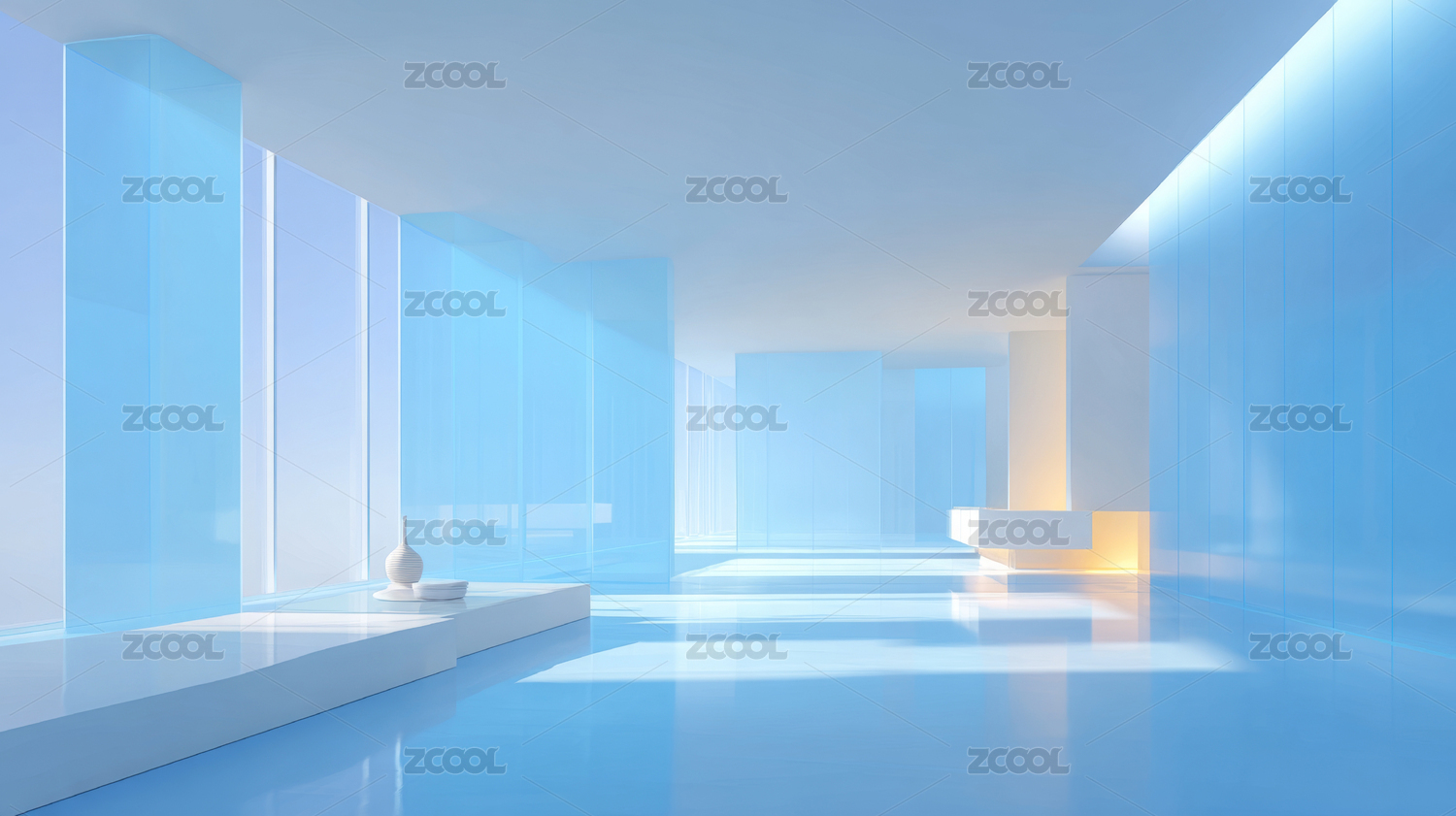 蓝色空间走廊现代建筑
