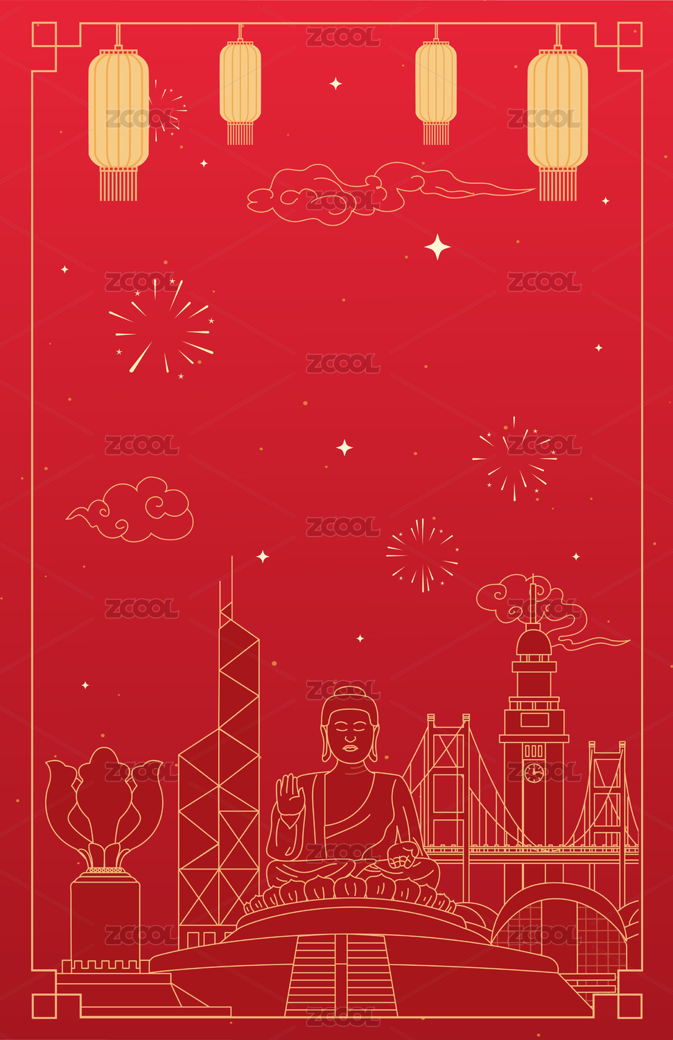中国香港红色喜庆周年庆国庆党建灯笼矢量