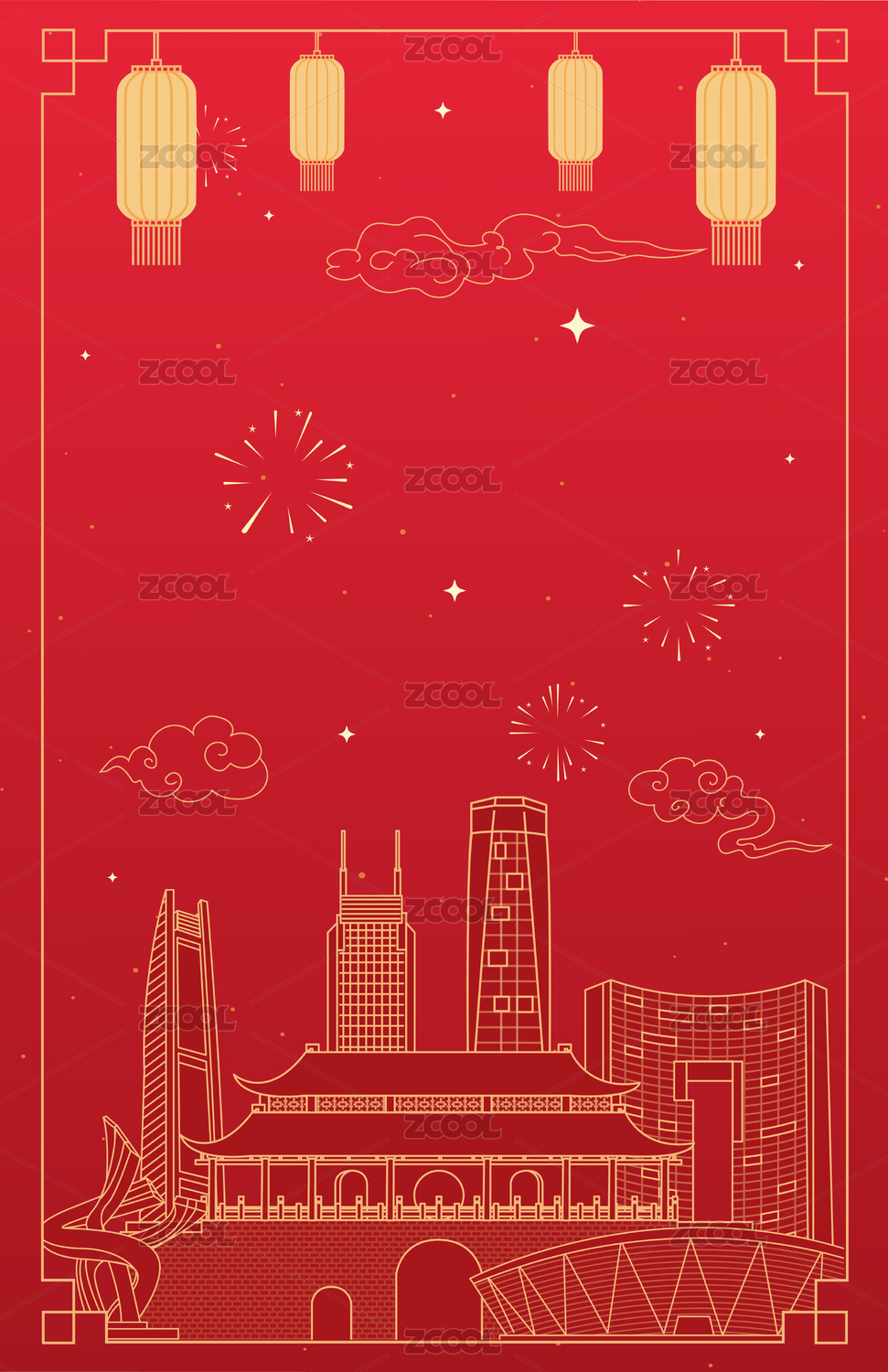 深圳红色喜庆周年庆国庆党建灯笼矢量城市