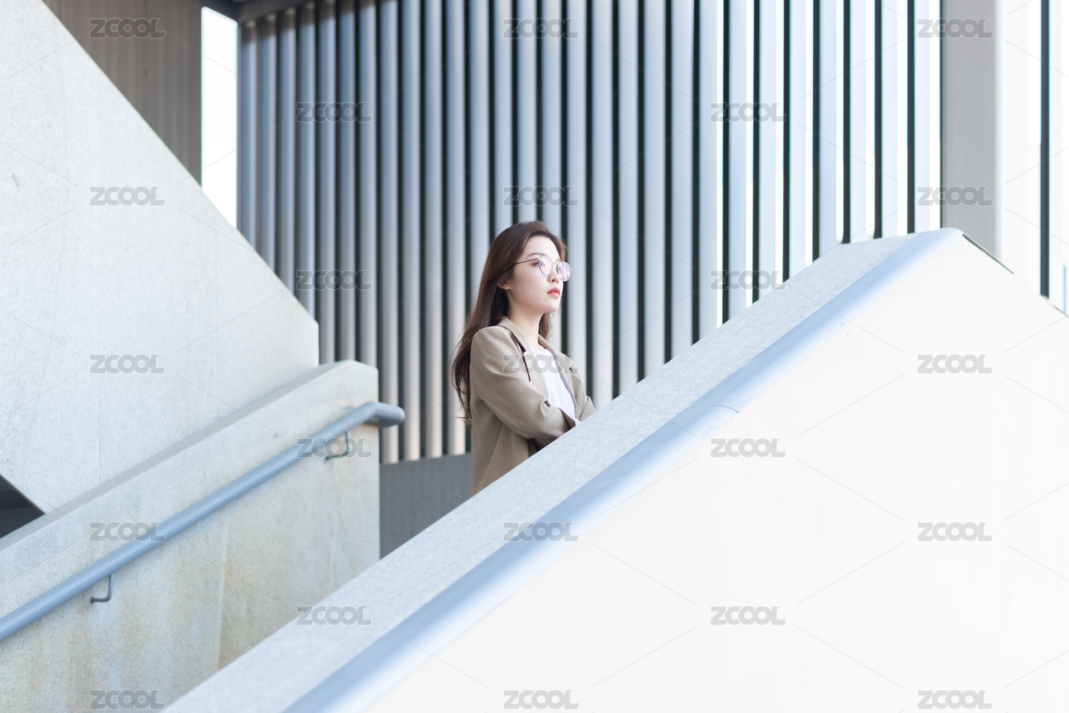 年轻女白领在楼梯上