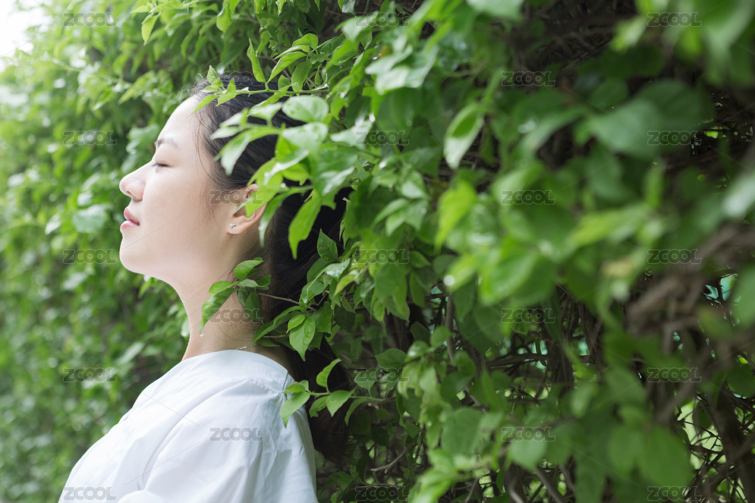女生户外写真侧面特写