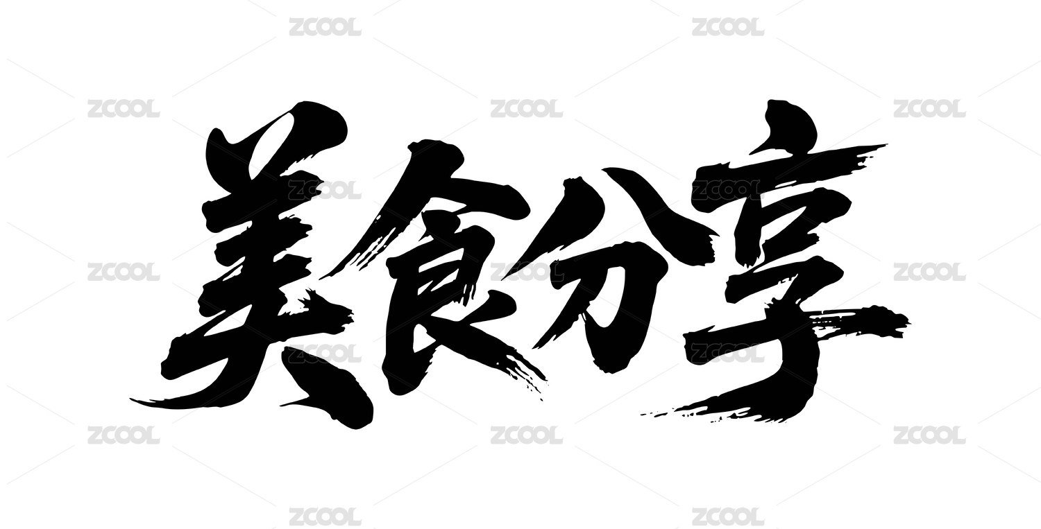 美食分享矢量书法手写毛笔字