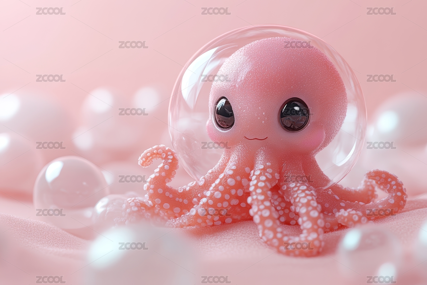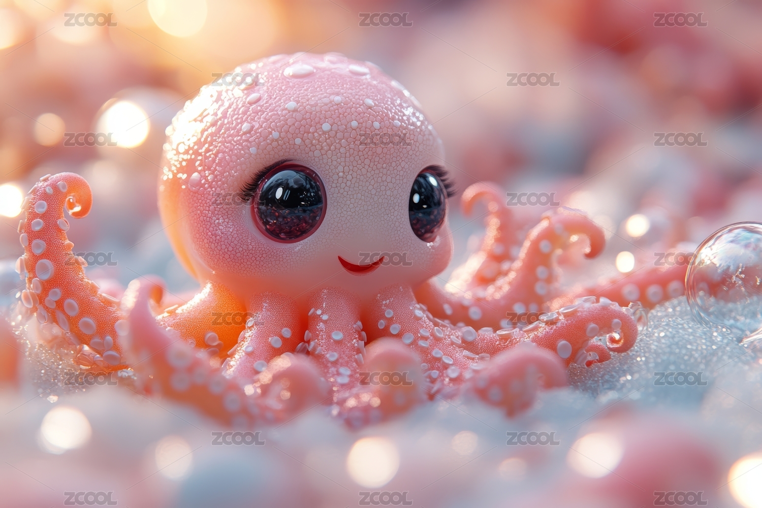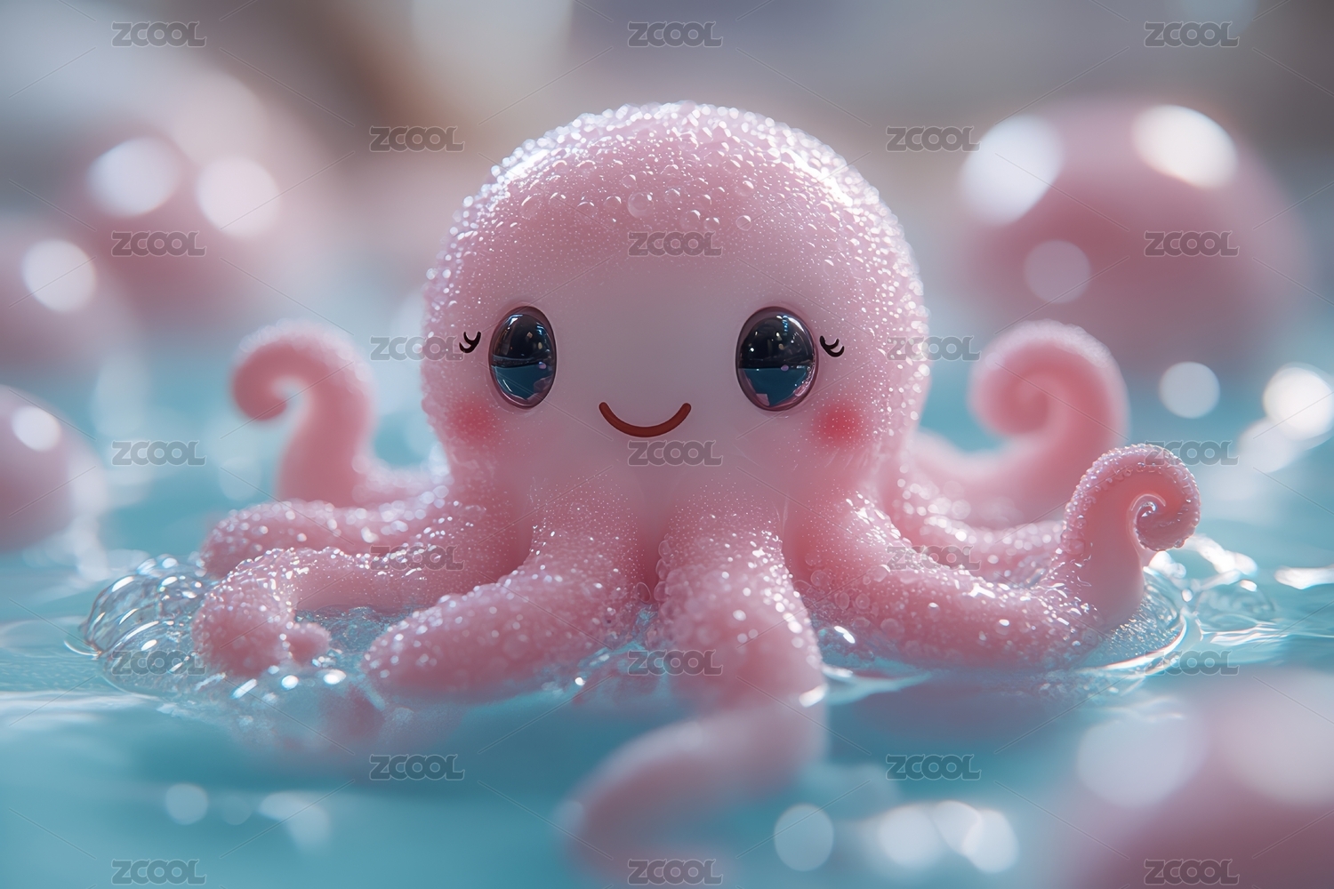 章鱼可爱唯美野生动物3D卡通插画壁纸