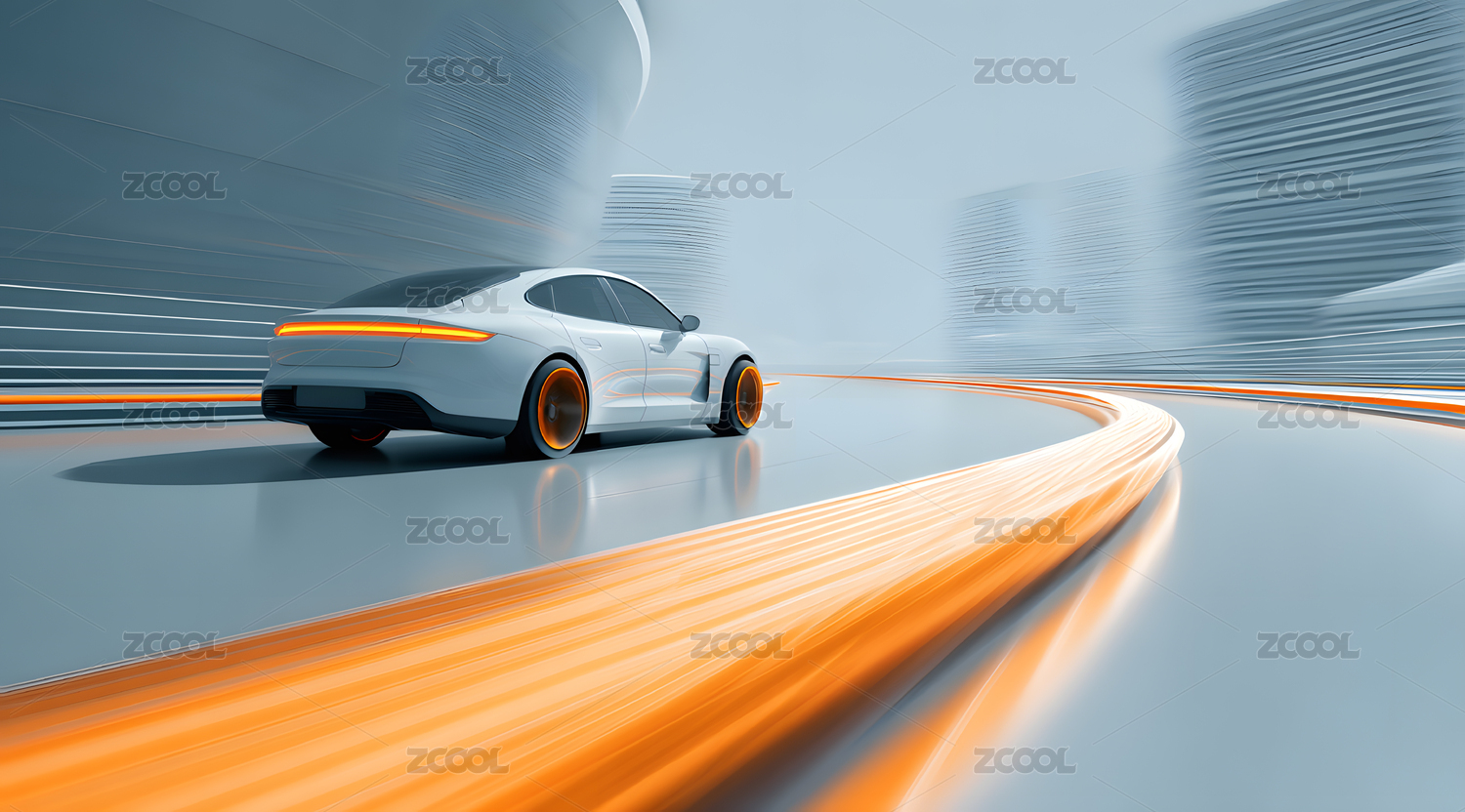 未来城市中的电动跑车