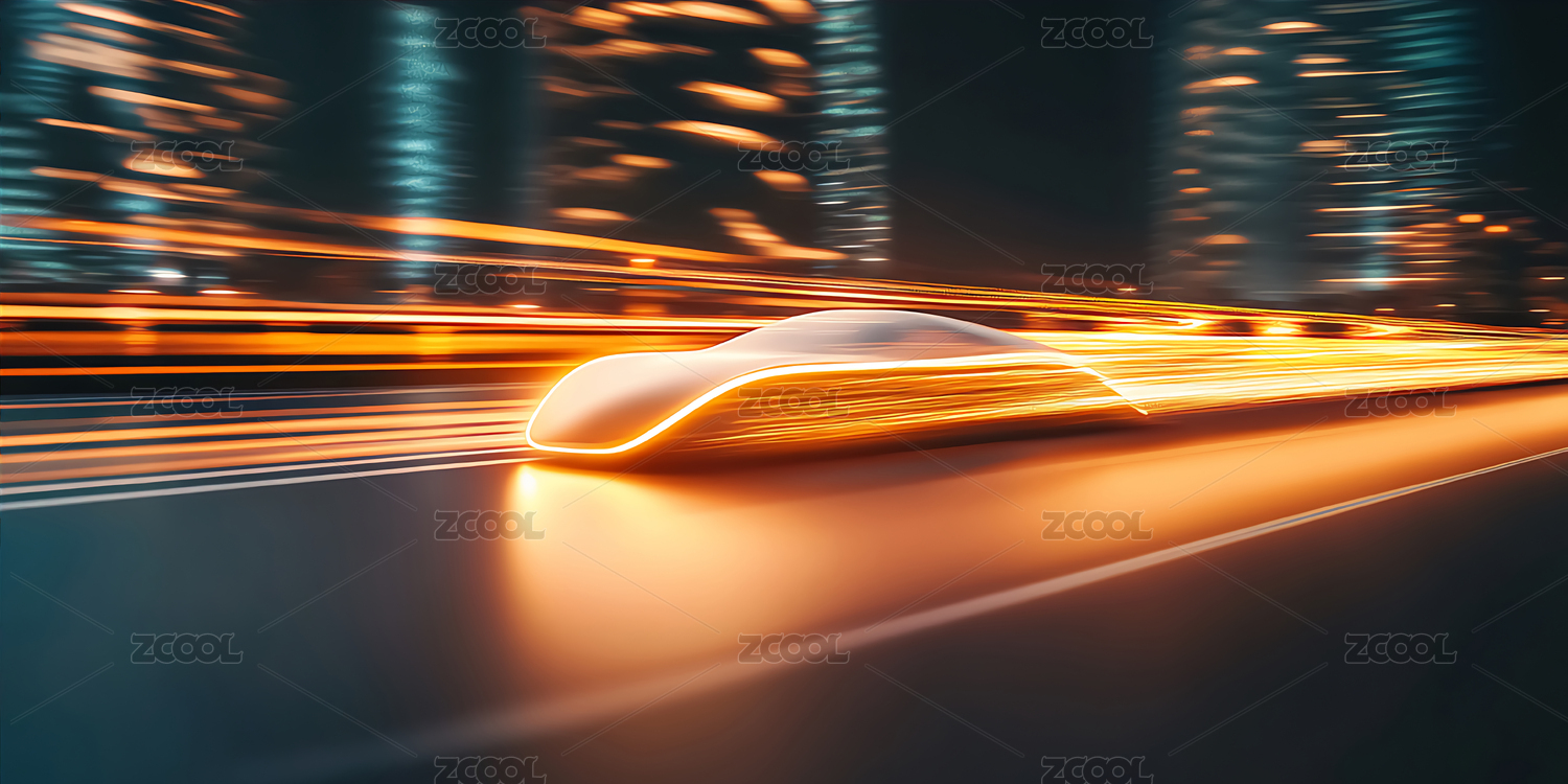 高速行驶的未来汽车和绚丽的光影