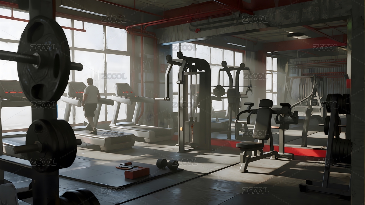 运动,光线,空间,灯光,设施,地板,器材,健身房,镜子,布局