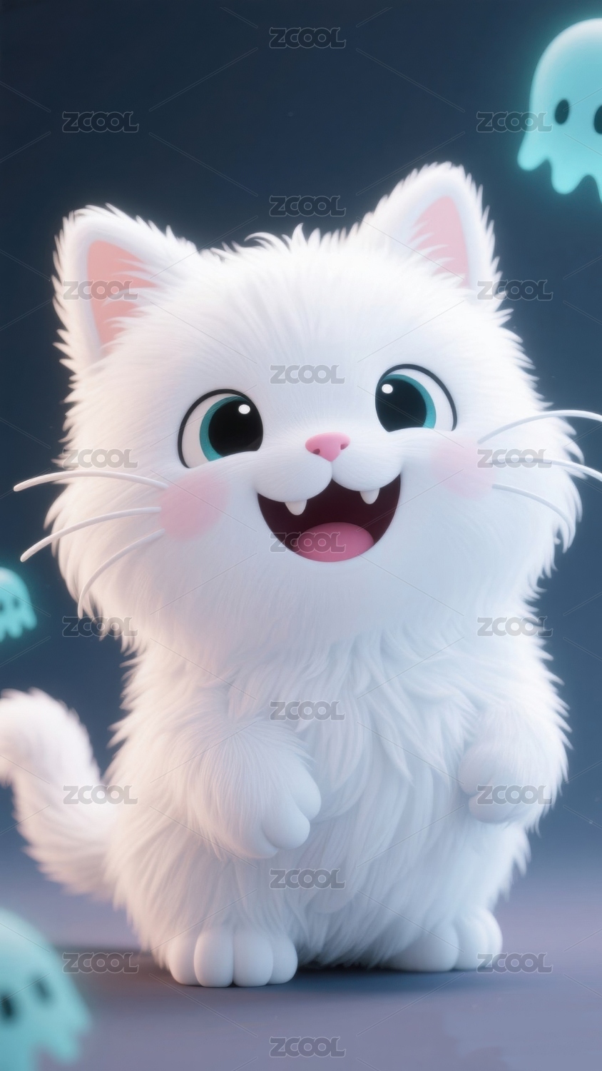 可爱白猫微笑背景有幽灵图案