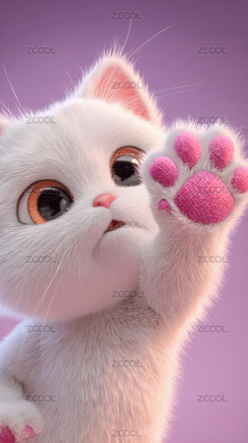 萌宠白猫粉嫩背景图