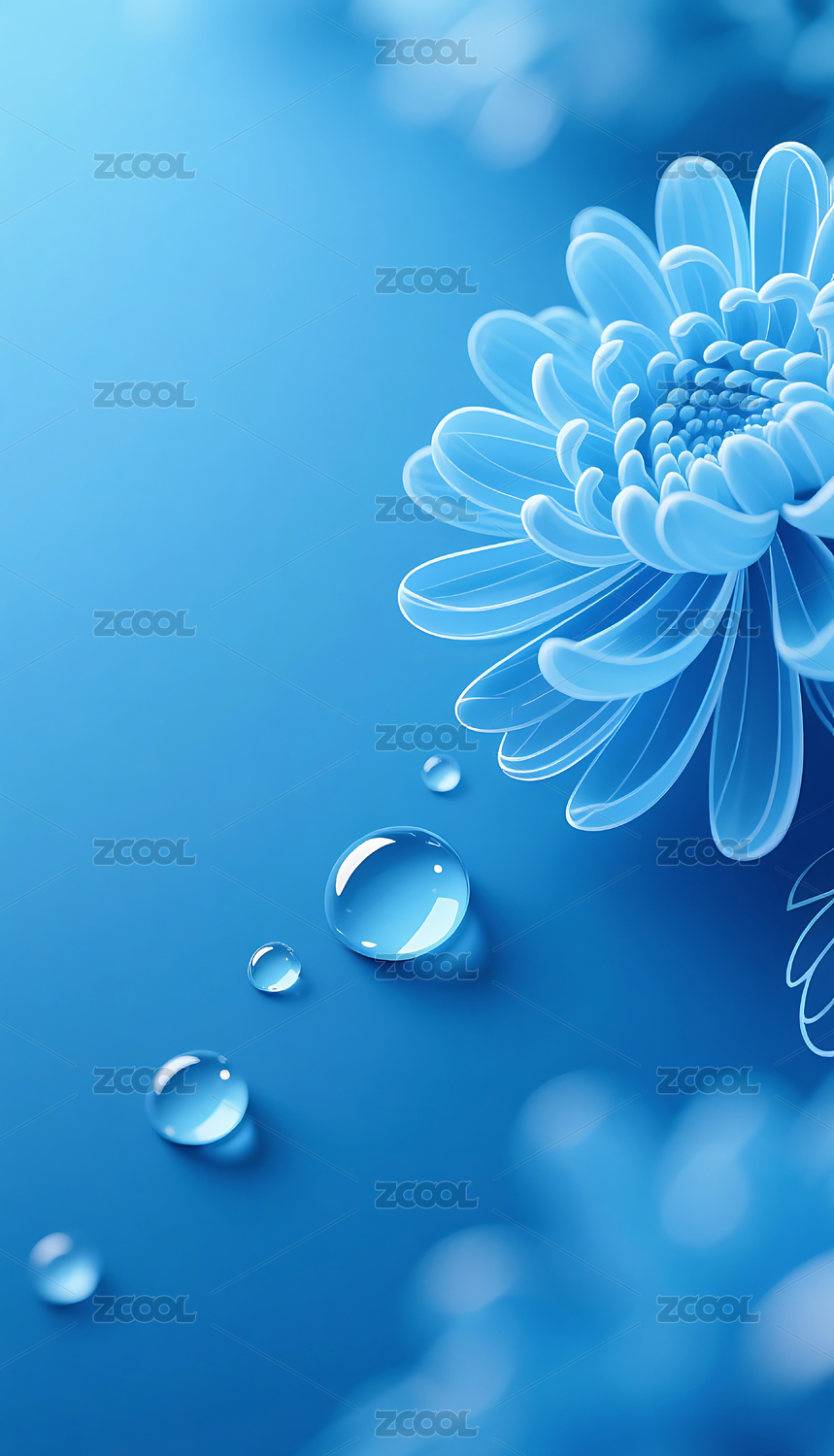 蓝色菊花清新唯美艺术场景