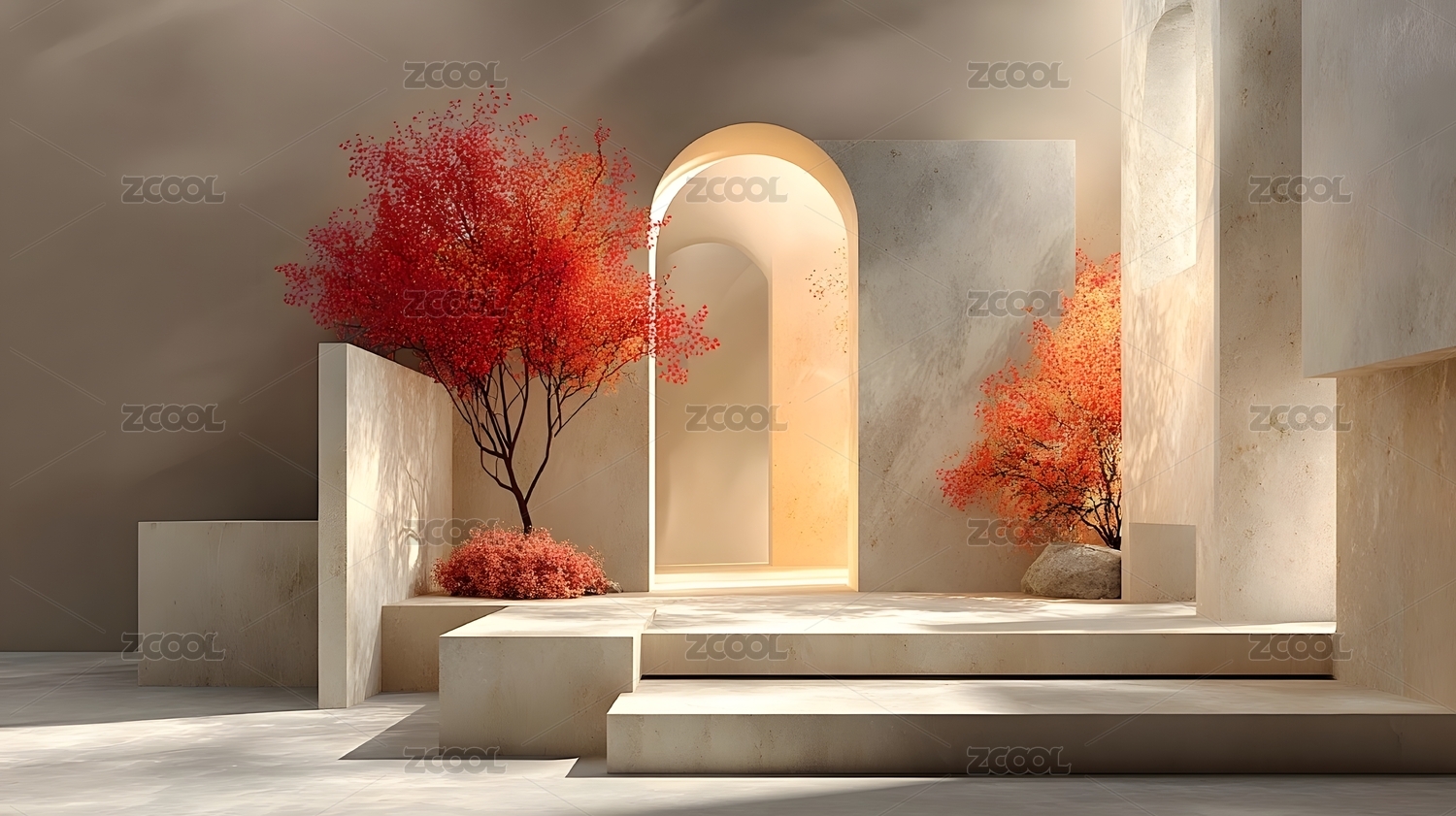 极简空间红色树拱门