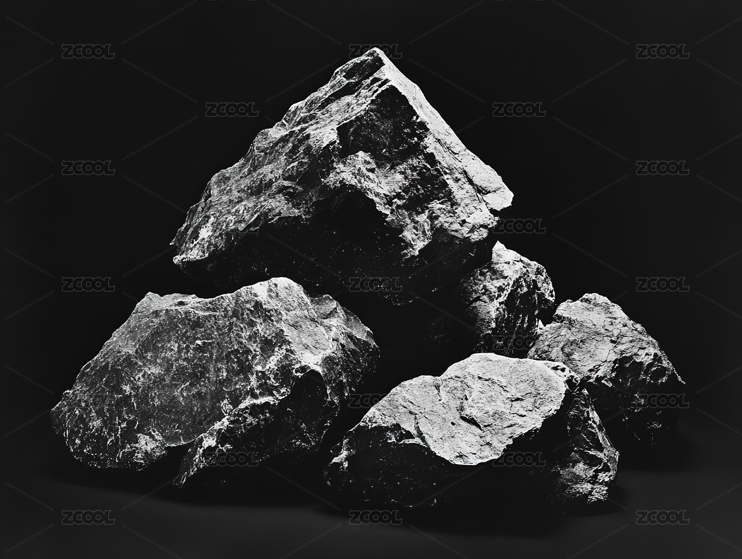黑色岩石静置于暗背景中
