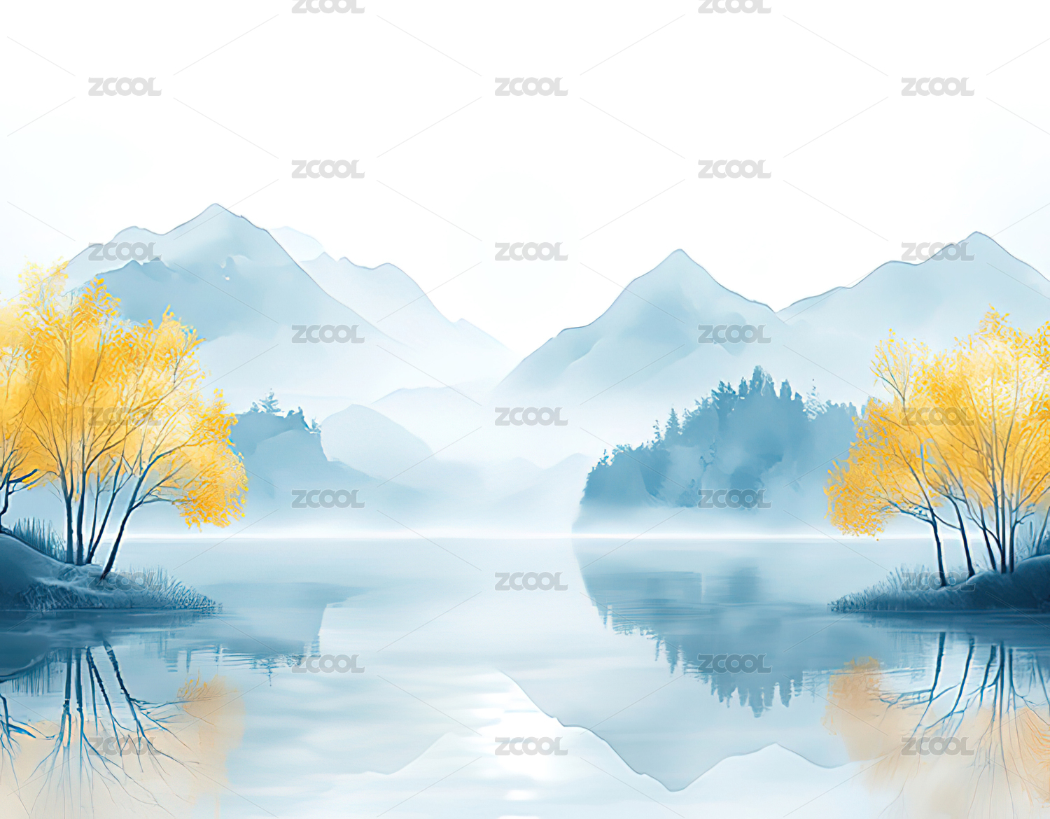 山水,中国风,风景,意境,水墨,树木,倒影,朦胧,雾气,树枝